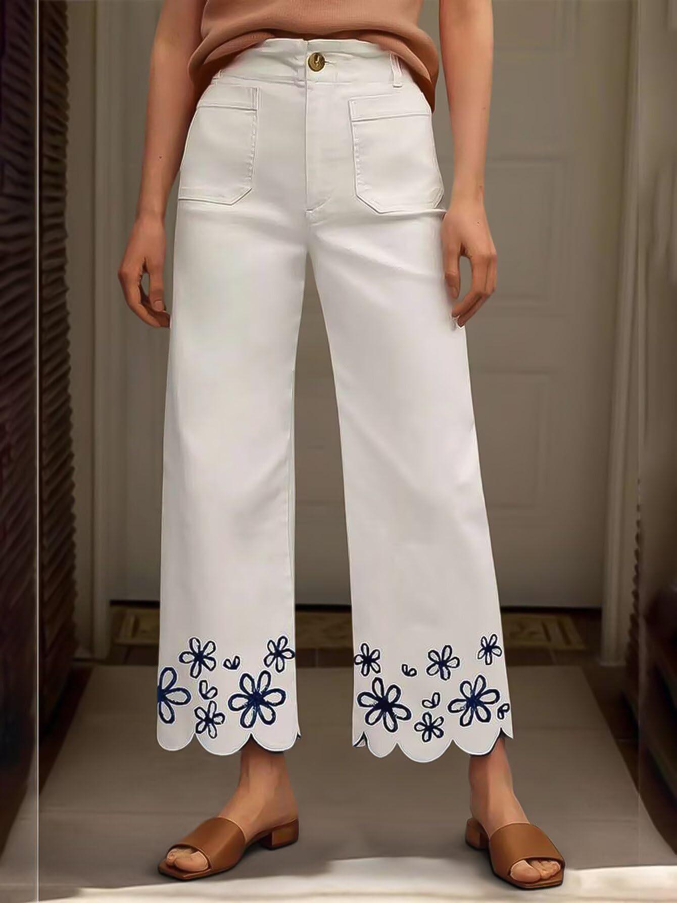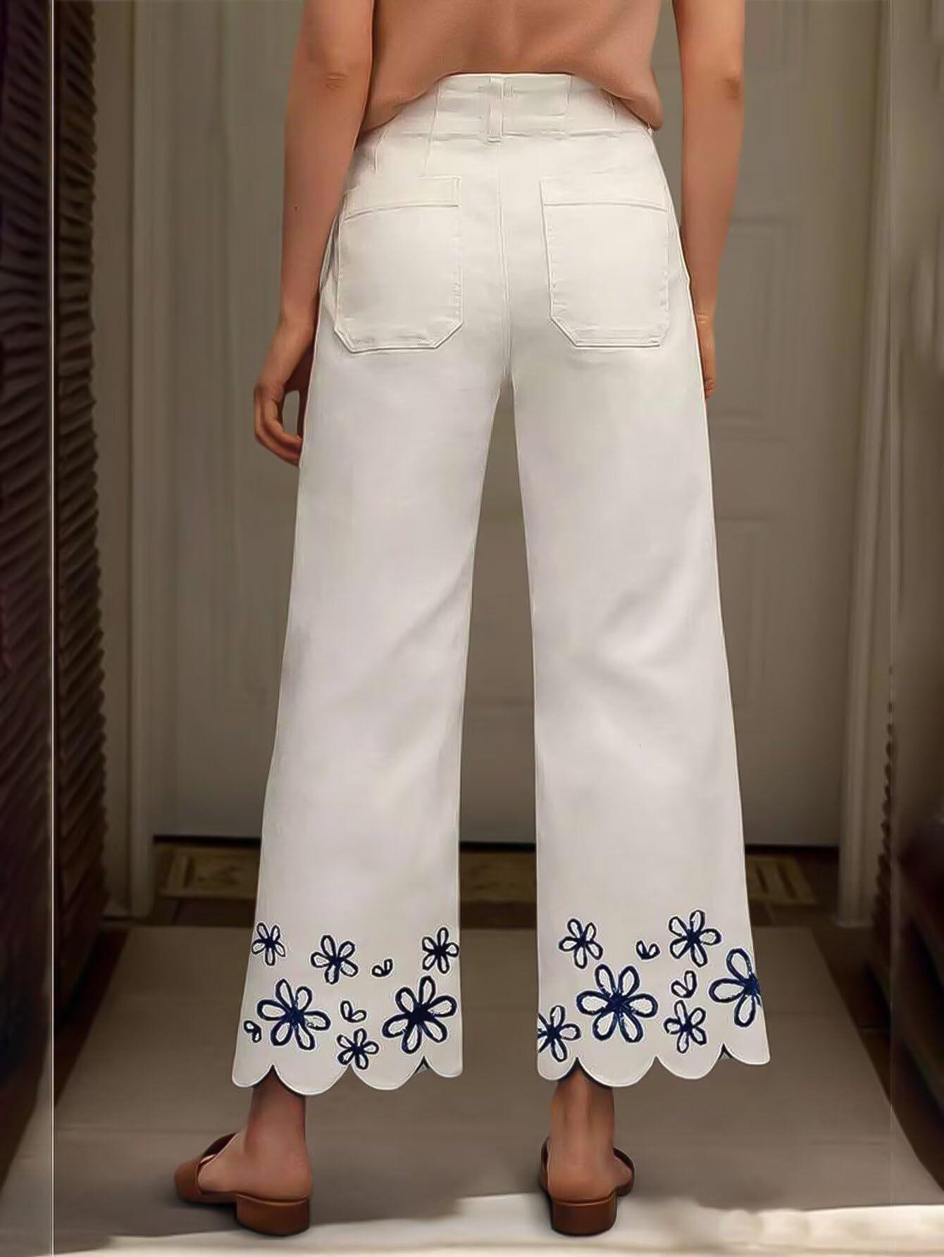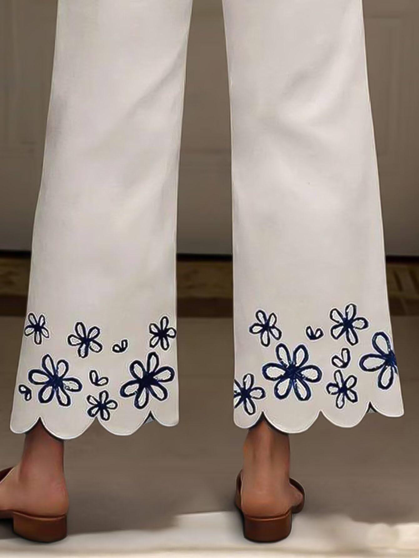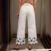 Roupas Femininas Transfronteiriças Europeias e Americanas 2025 Verão Novo Bordado de Flores Francês Casual Retrô Renda Calças Casuais e Calças