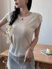 Verão Novo Branco Tencel Manga Curta Ombro Ombro Manga Curta Camiseta Feminina Slim-fit Skinny Top Manga Voadora