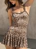 Roupas Femininas de Comércio Exterior Europeu e Americano 2025 Verão Novo Vestido Slim Sexy de Alças Estampado em Forma de Orelha Justo ao Corpo