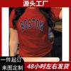 Comércio Exterior Europa e América Estampa de Letra Boston Camiseta Casual Feminina de Manga Curta e Gola Redonda