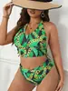 2016 Novo Maiô Multicolorido Cruzado Dividido Biquíni Europeu e Americano com Combinação de Cores Maiô de Comércio Exterior Maiô Plus Size