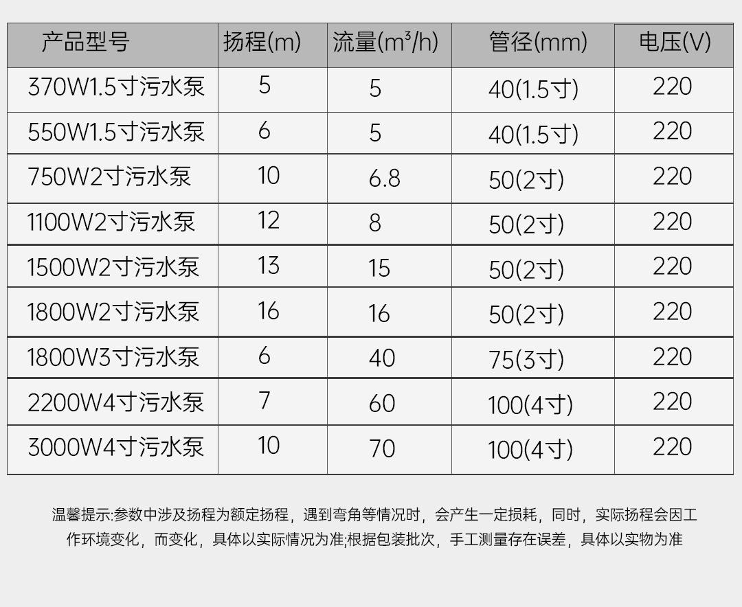 Bomba Submersível 220V Bomba de Esgoto Pequena Bomba de Água Doméstica Bomba de Água Agrícola de Alta Elevação Grande Vazão Irrigação Esgoto