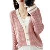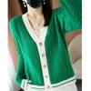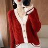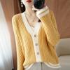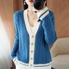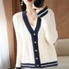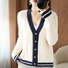 Casaco Outono e Inverno 2023 Novo Cardigan Tricotado Torcido Combinando Cores Decote V Suéter Macio e Encerado Top Feminino Solto Primavera e Outono