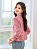 Rosa Manga Curta Manga Longa Primavera Outono Inverno Novo 2025 Casaco Pequeno com Gola de Terno Feminino Moda Elegante Combina com Tudo Top