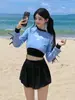 Maiô novo estilo coreano de bolinhas triângulo dividido emagrecedor manga longa mergulho protetor solar praia surfe roupa de água-viva roupa de mergulho