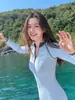 Novo Fato de Banho Estilo Coreano Bolinhas Onduladas Manga Longa Dividido Cobrindo a Barriga Emagrecimento Mergulho Surf Fato de Medusa Fato de Snorkel Fato de Banho Mulheres