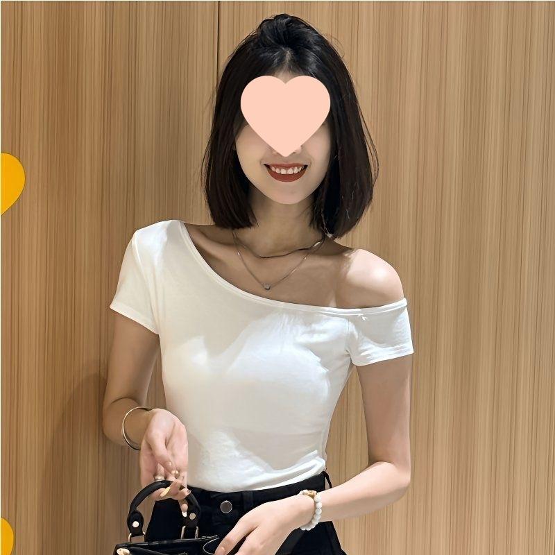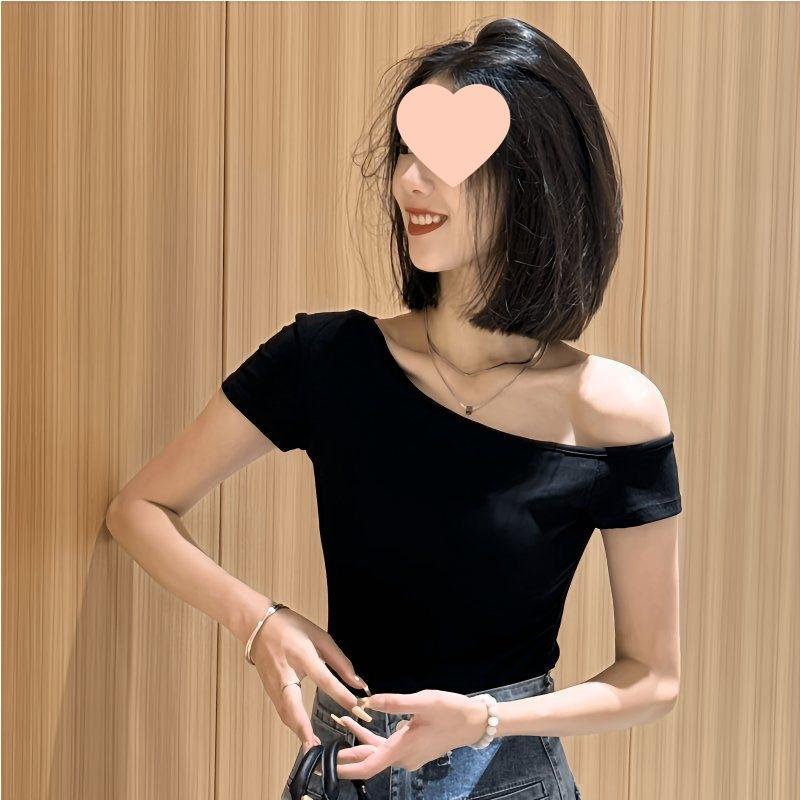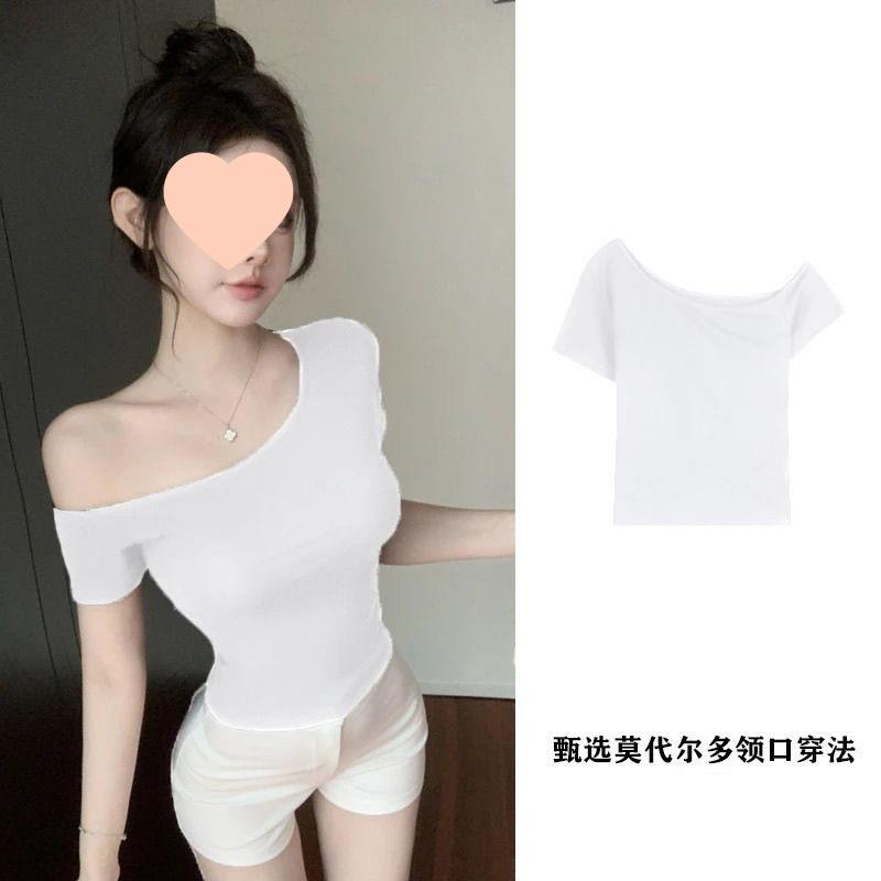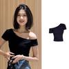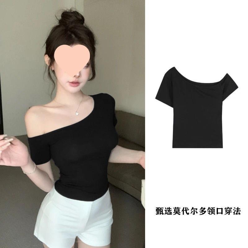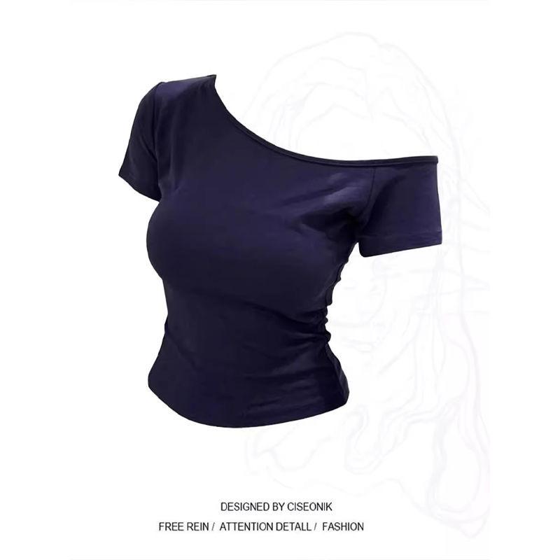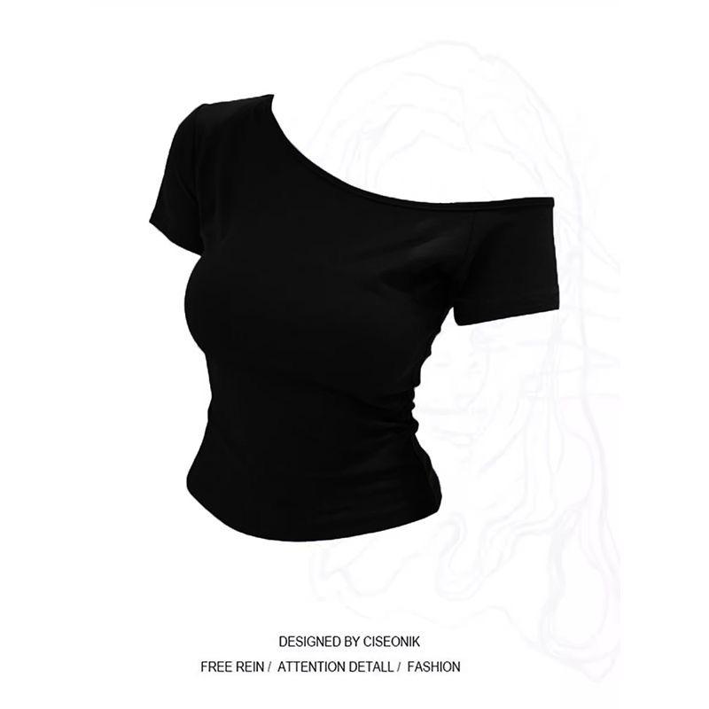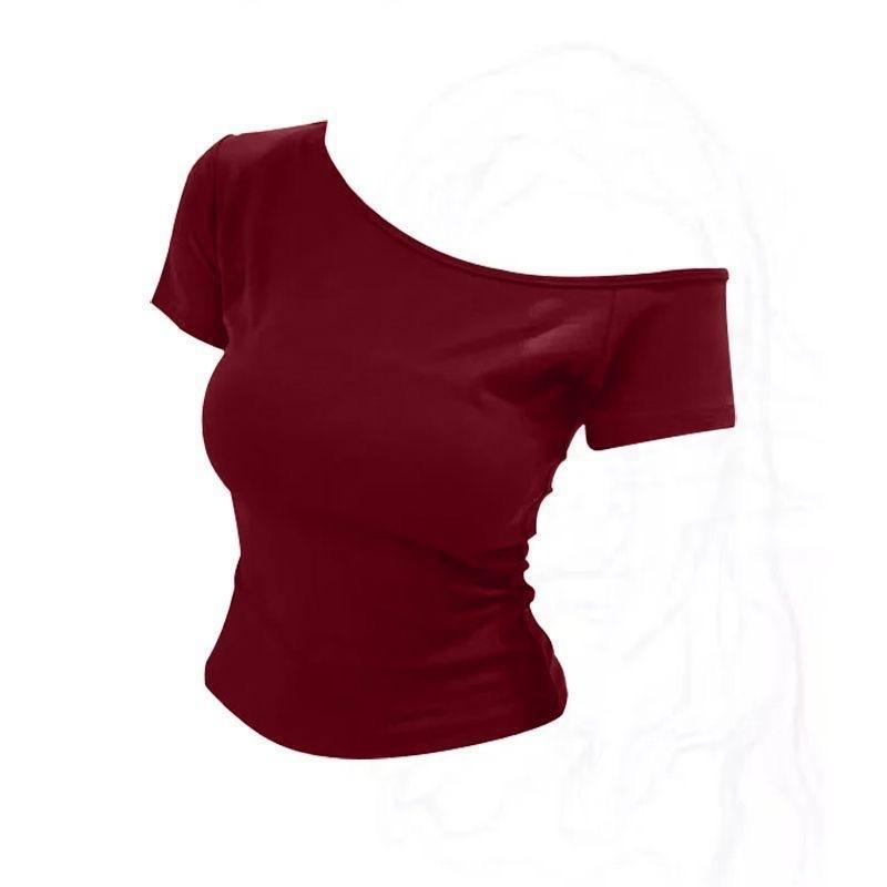 Estoque de Fábrica Pronto, Tops Energéticos Sexy de Ombro Inclinado e Manga Curta para Mulheres, Verão Cor Sólida Design Decote Ombro a Ombro Clavícula, Vendas Diretas