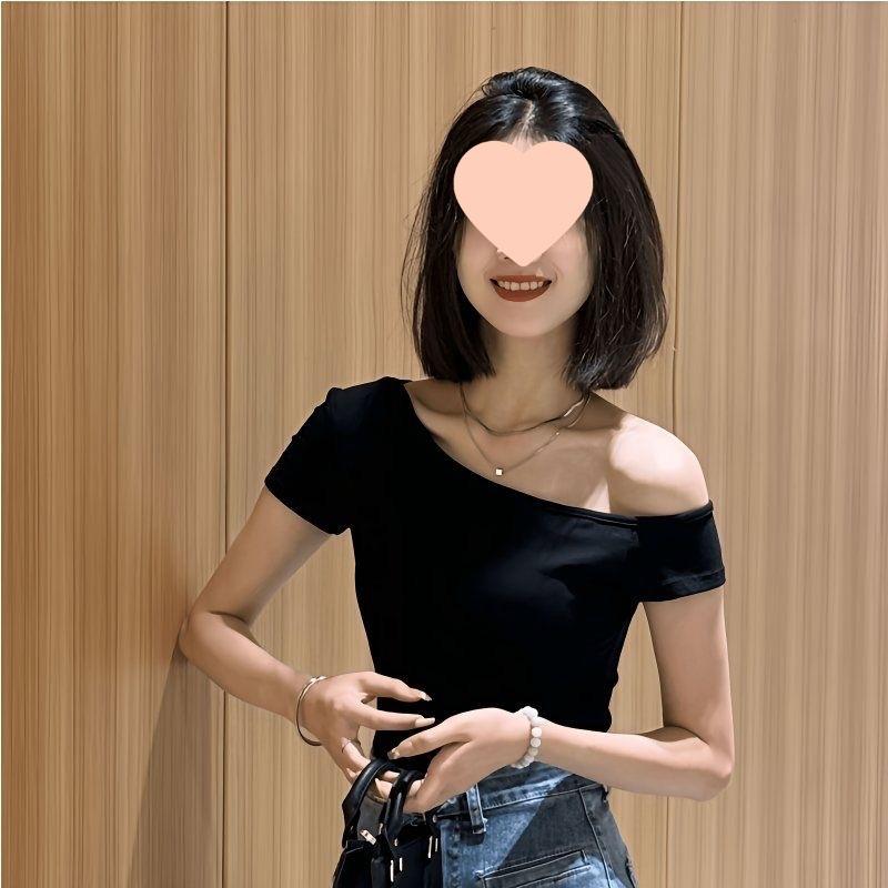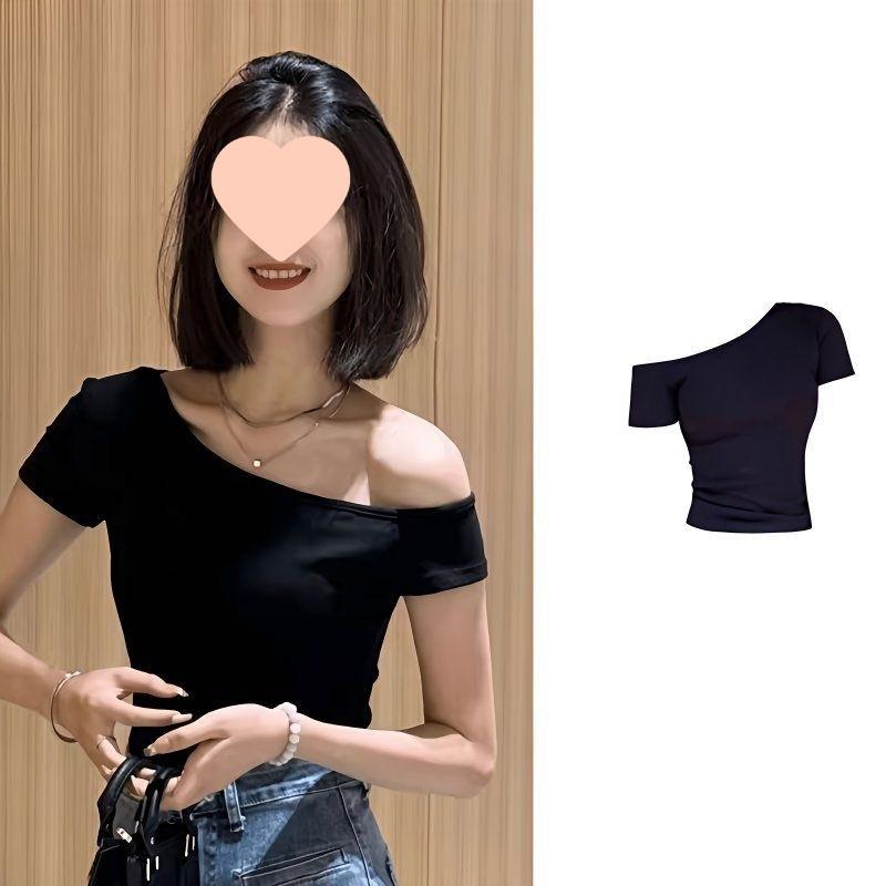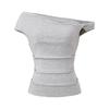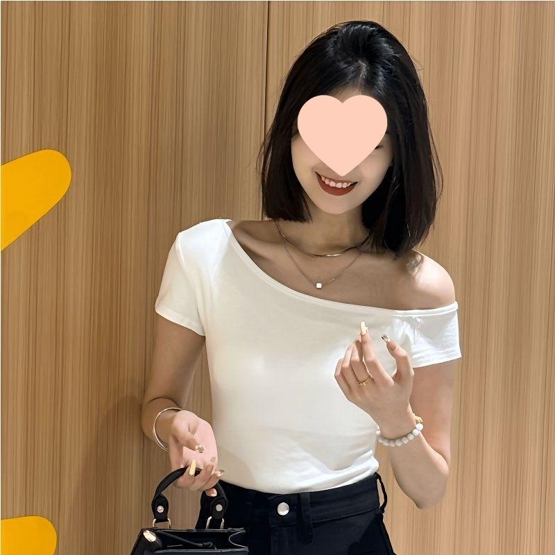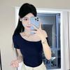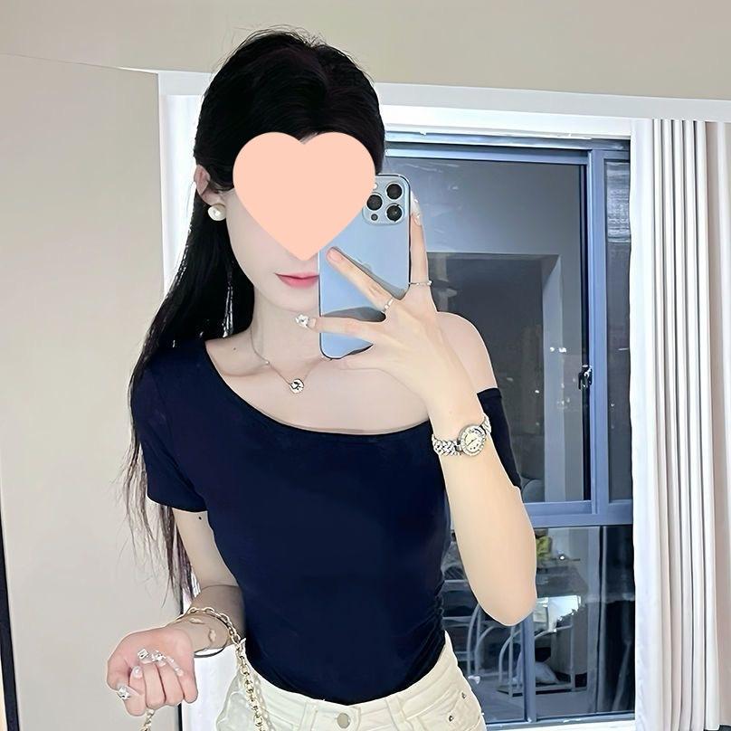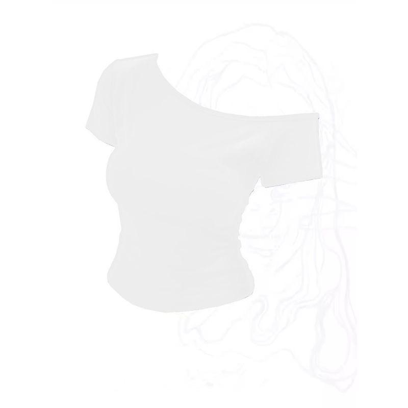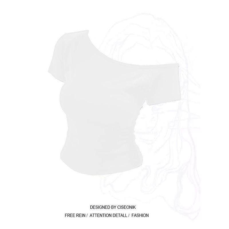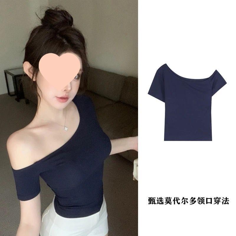 Estoque de Fábrica Pronto, Tops Energéticos Sexy de Ombro Inclinado e Manga Curta para Mulheres, Verão Cor Sólida Design Decote Ombro a Ombro Clavícula, Vendas Diretas