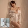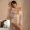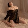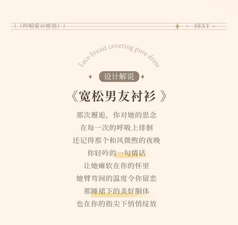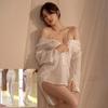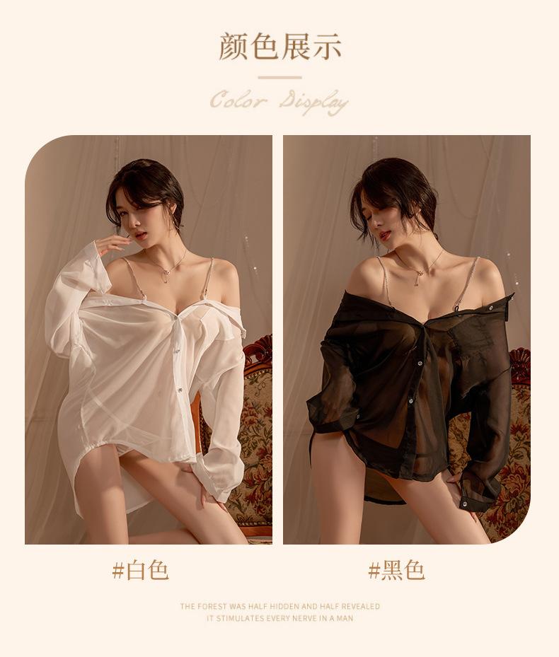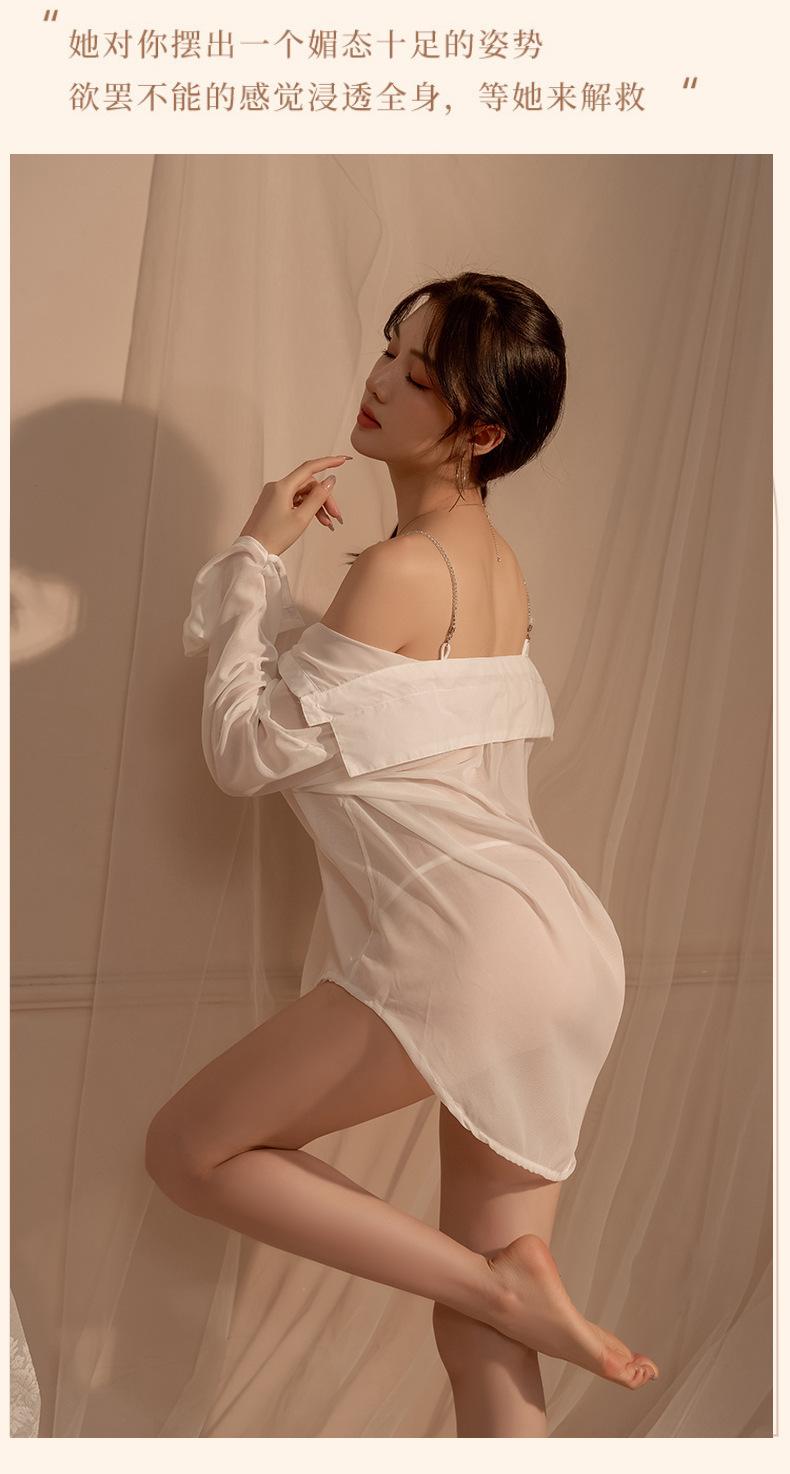 Camisa Sexy e Interessante de Imitação de Namorado Camisola de Chiffon Transparente Conjunto de Pijama de Luxo com Suspensório de Diamante Puro Desejo