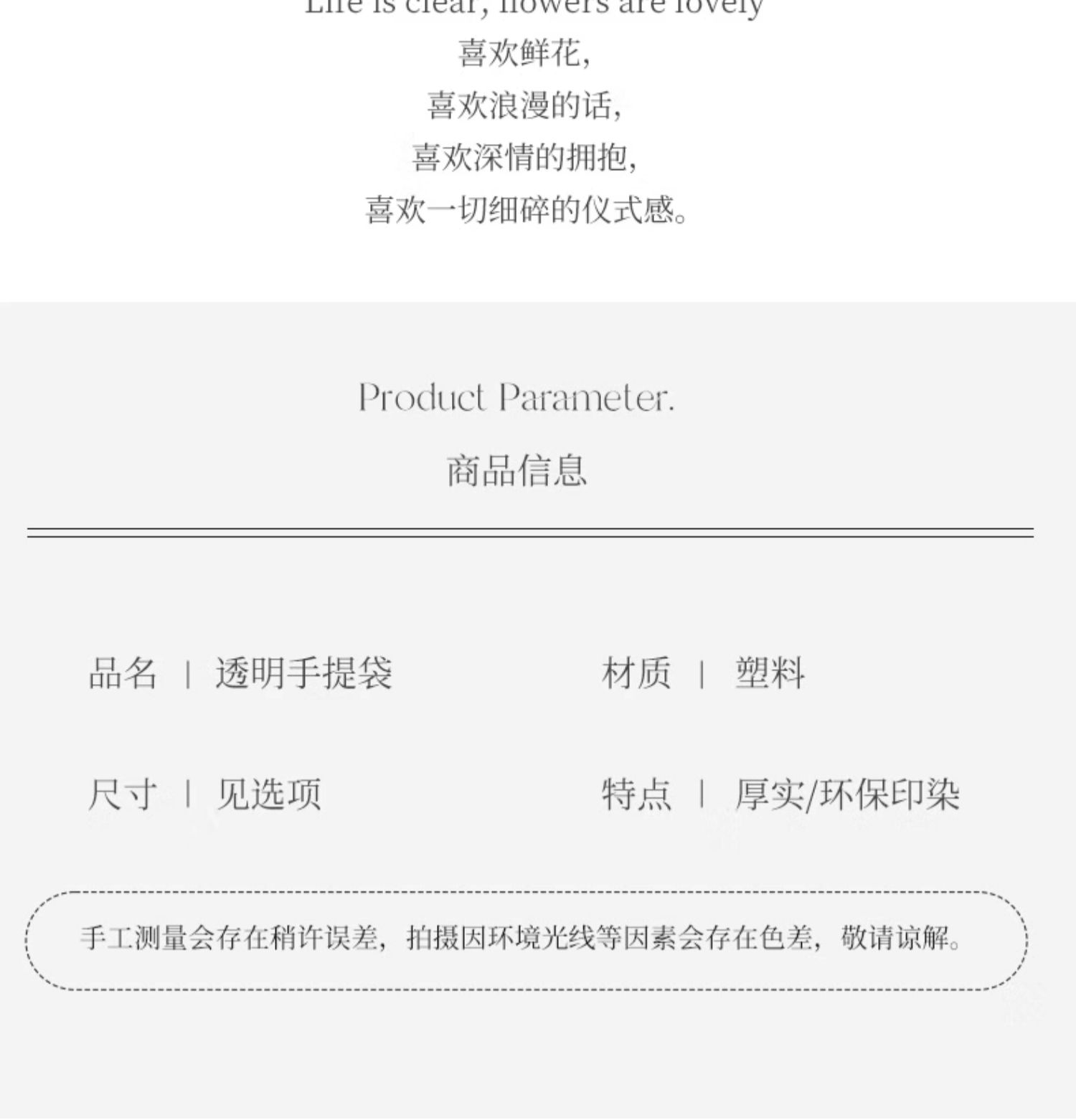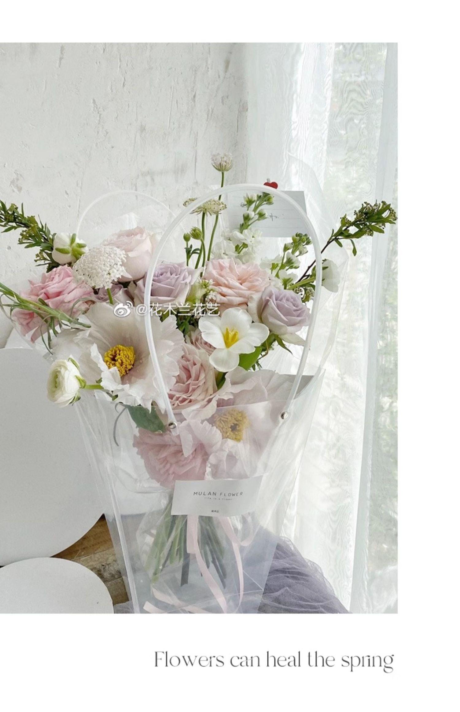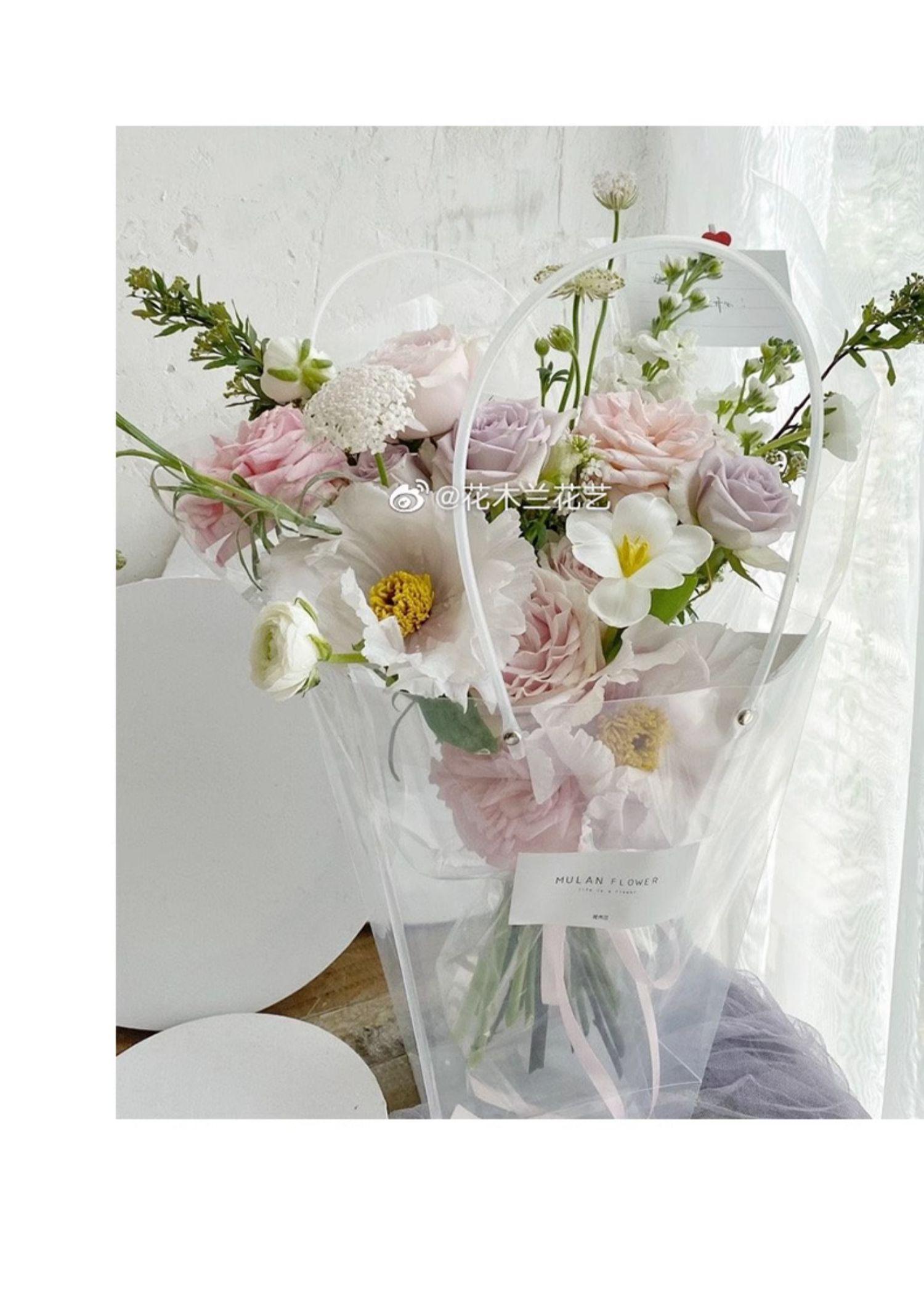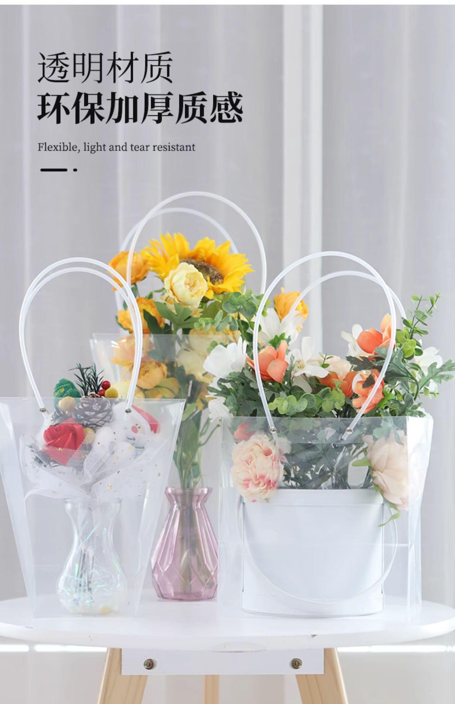 Bolsa Tote Transparente de PVC para Arranjo de Flores Cesta Pequena Buquê Material DIY Impermeável Sacola de Presente Sacola Floral Flor Azul