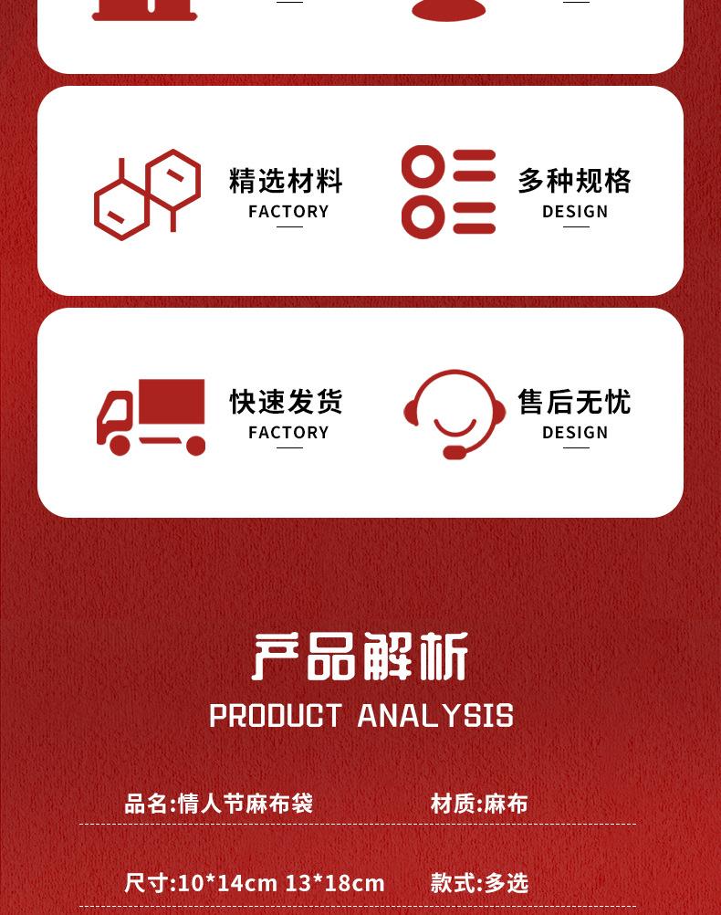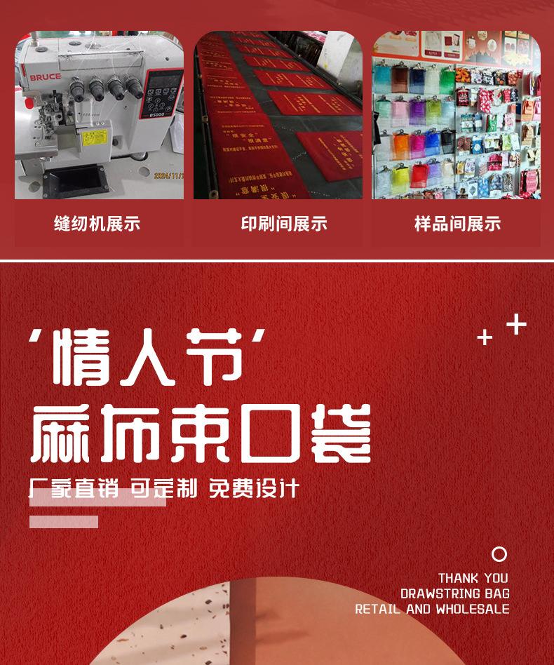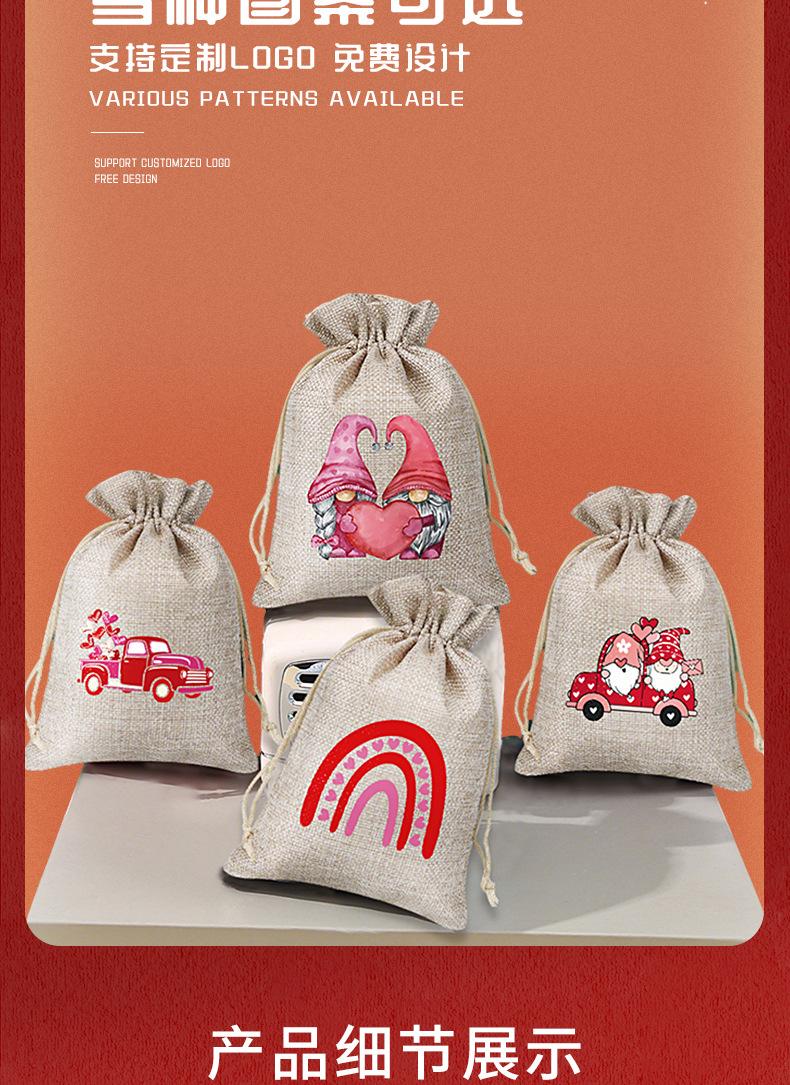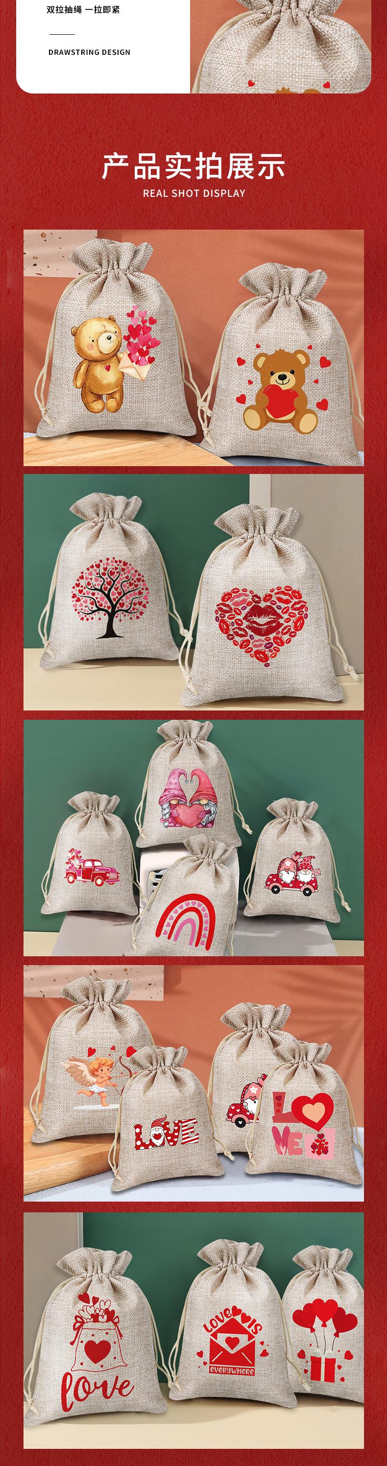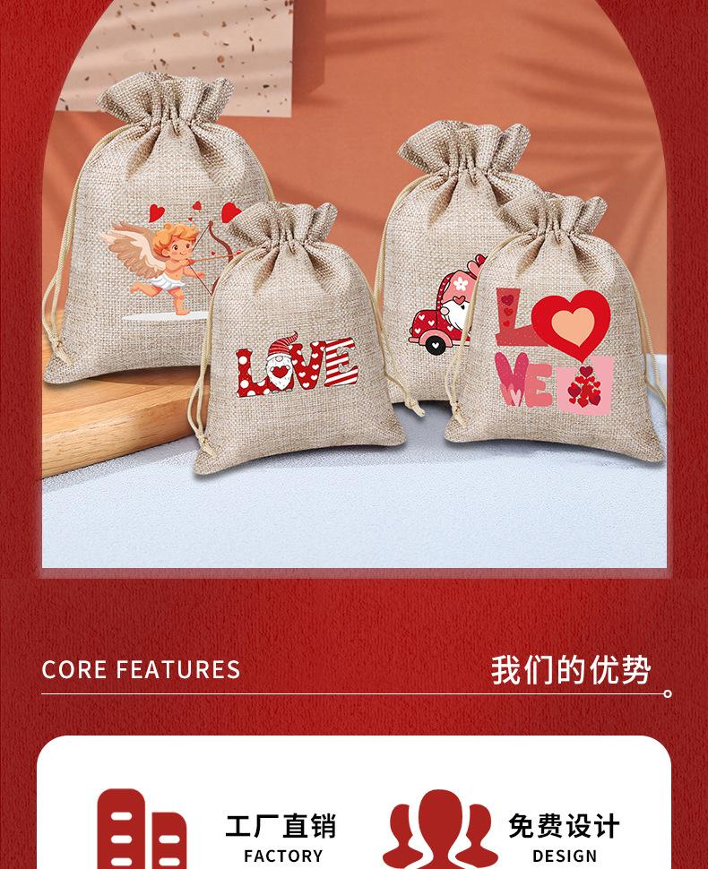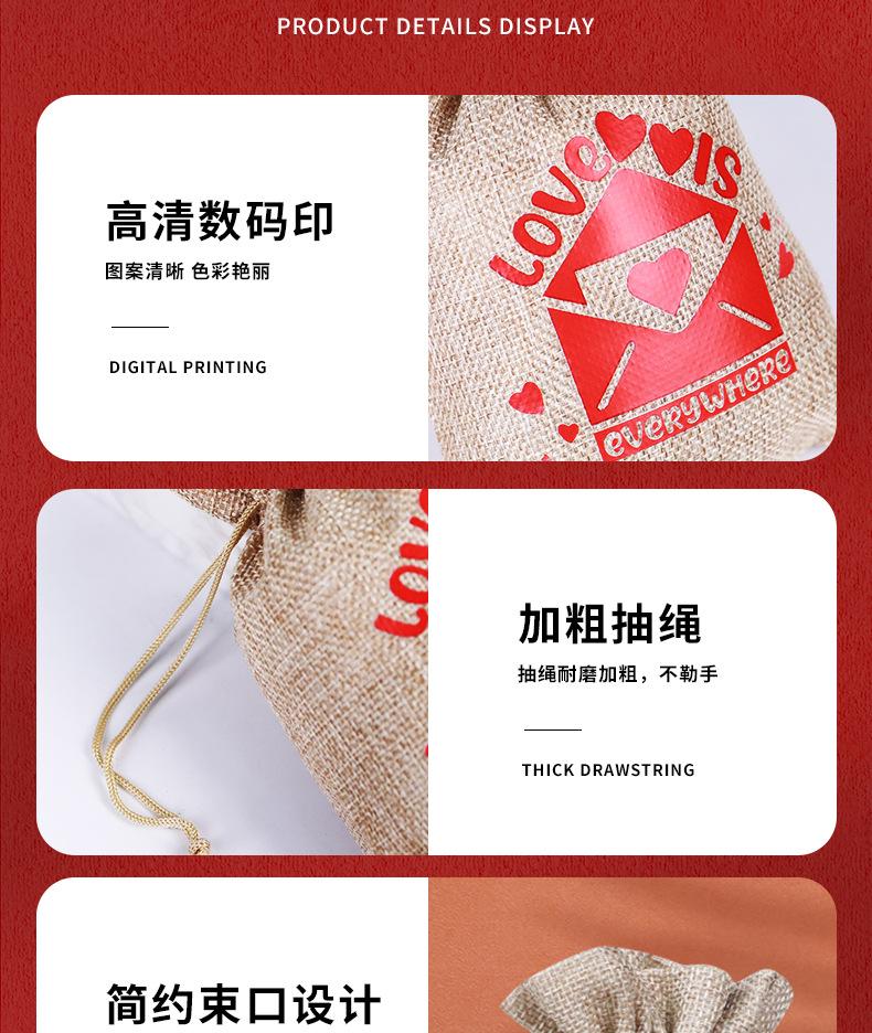 Saco de presente de linho vermelho amor Dia dos Namorados casamento embalagem de doces cordão atacado