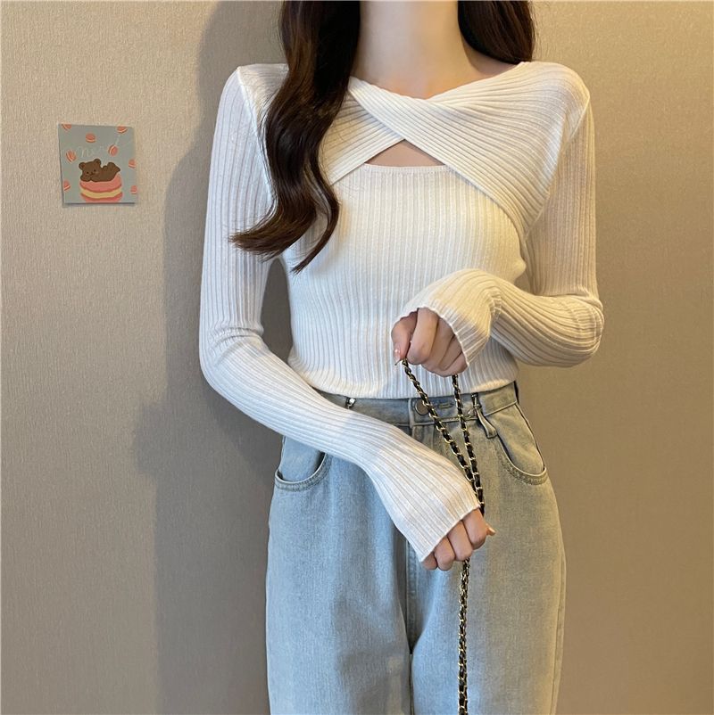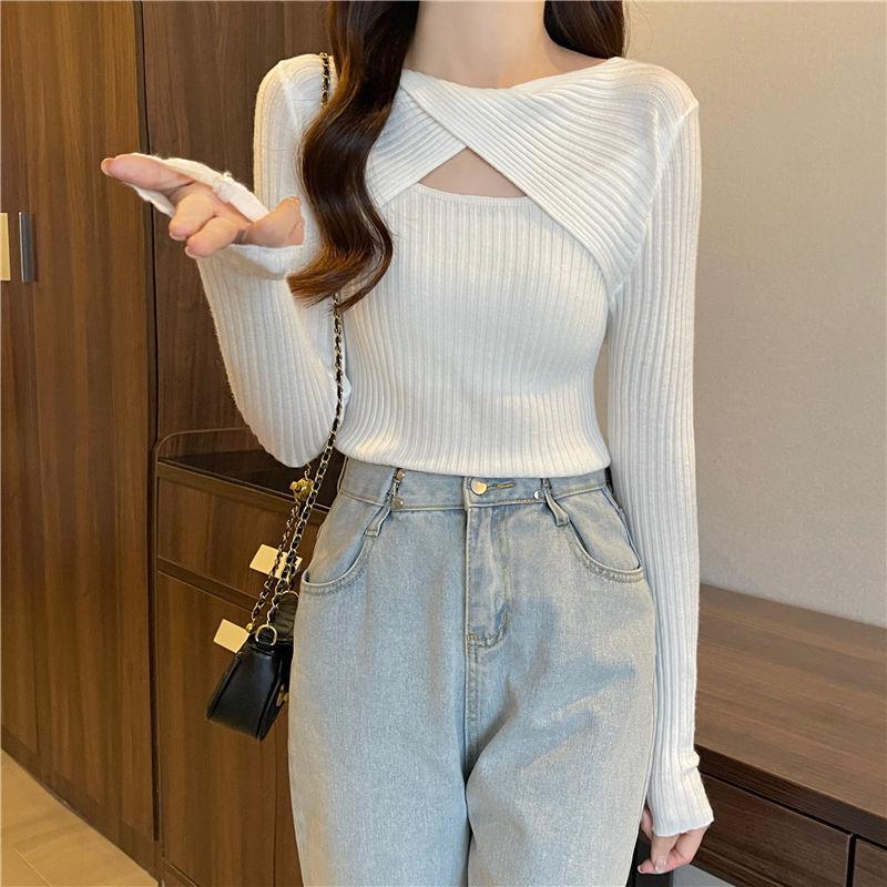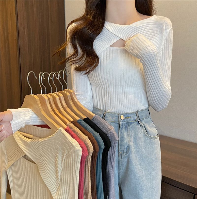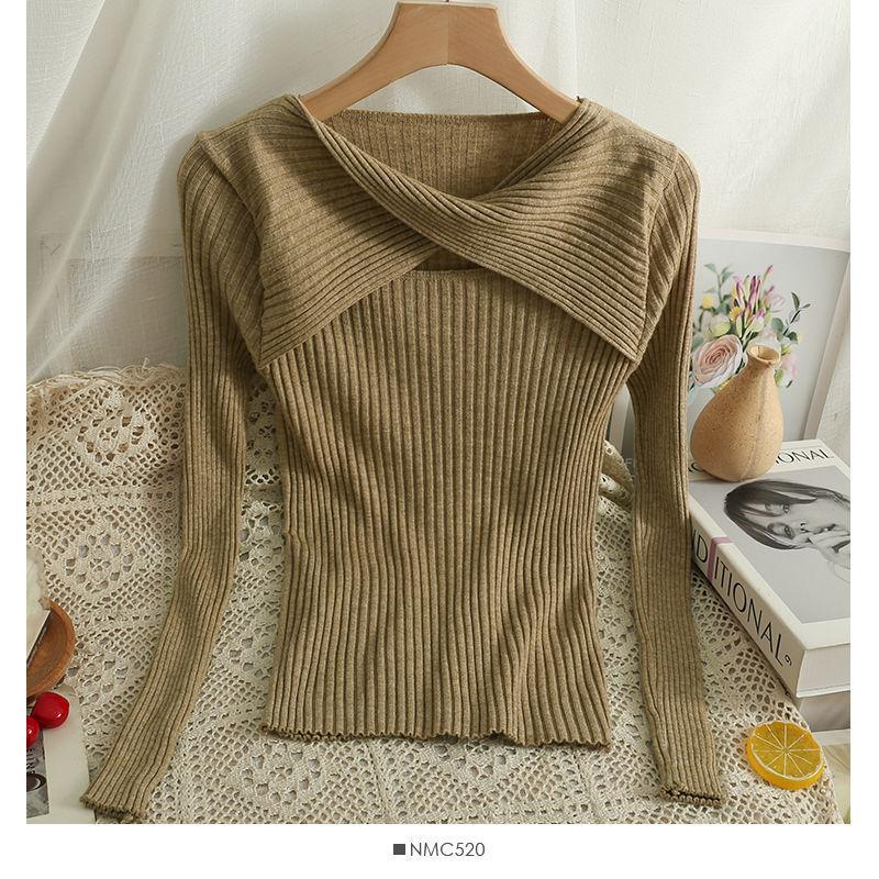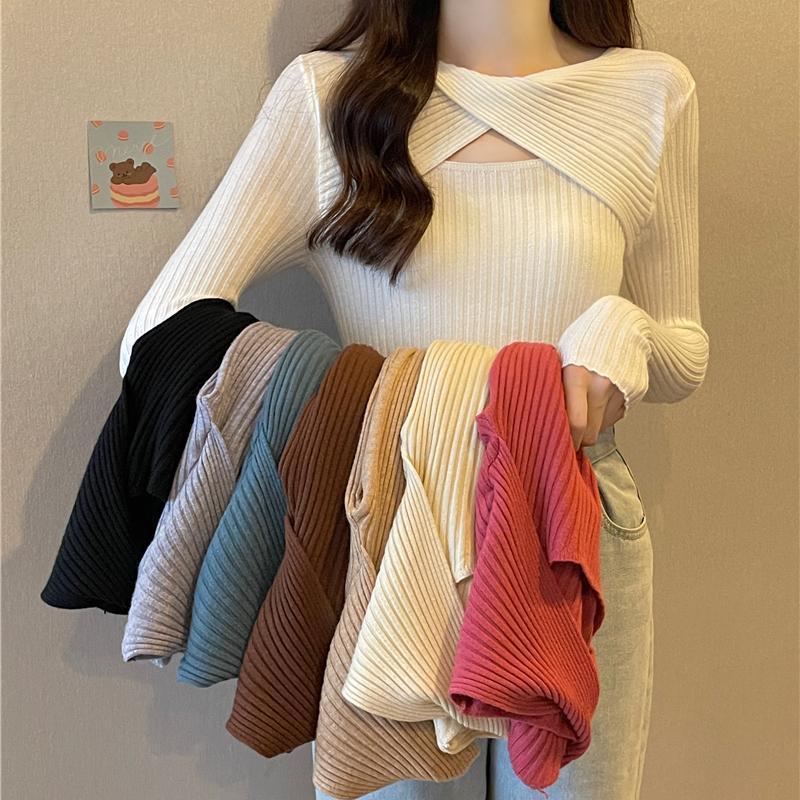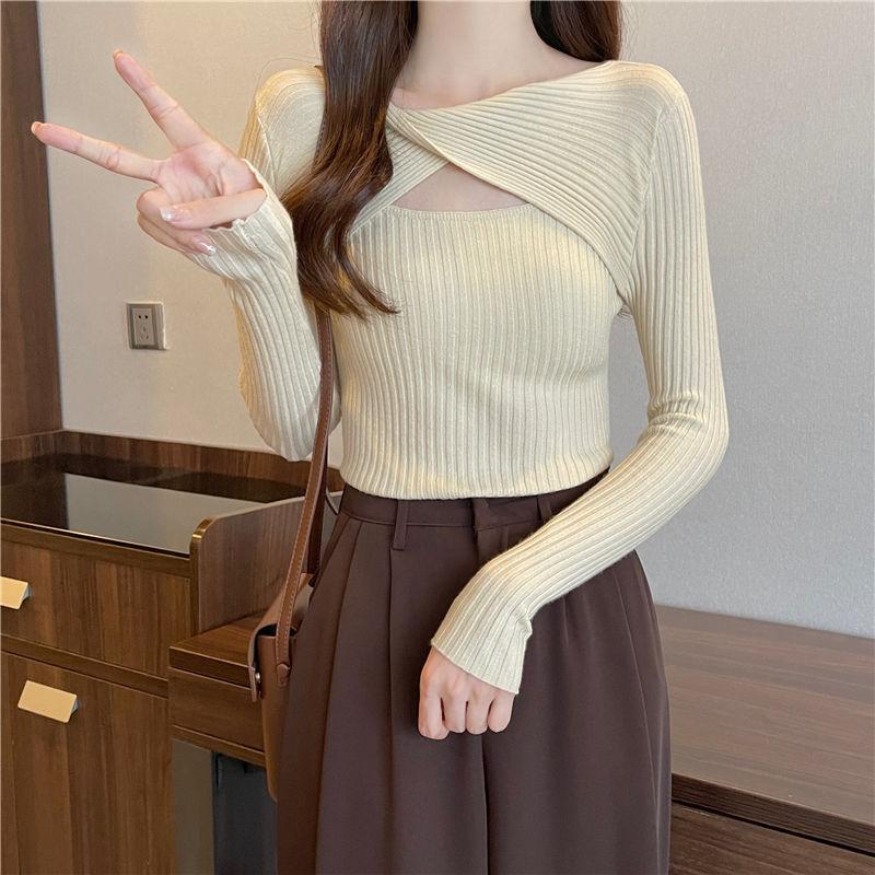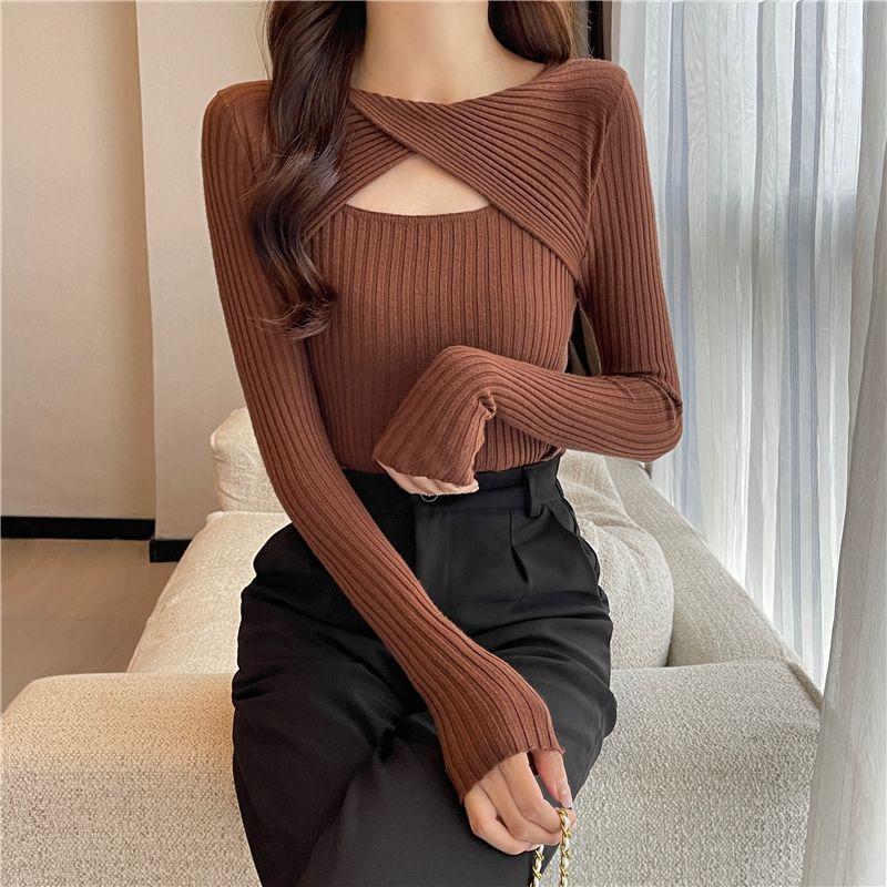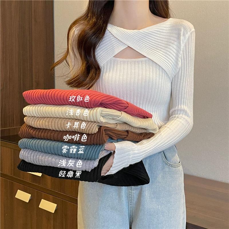 Suéter e Suéter Estilo Transfronteiriço para Mulheres no Outono Novo Design Moda Nicho Transfronteiriço Top de Base de Manga Longa