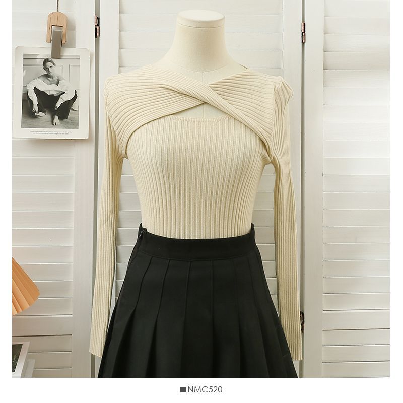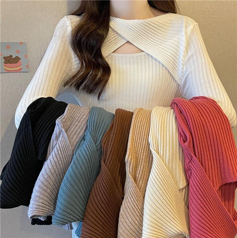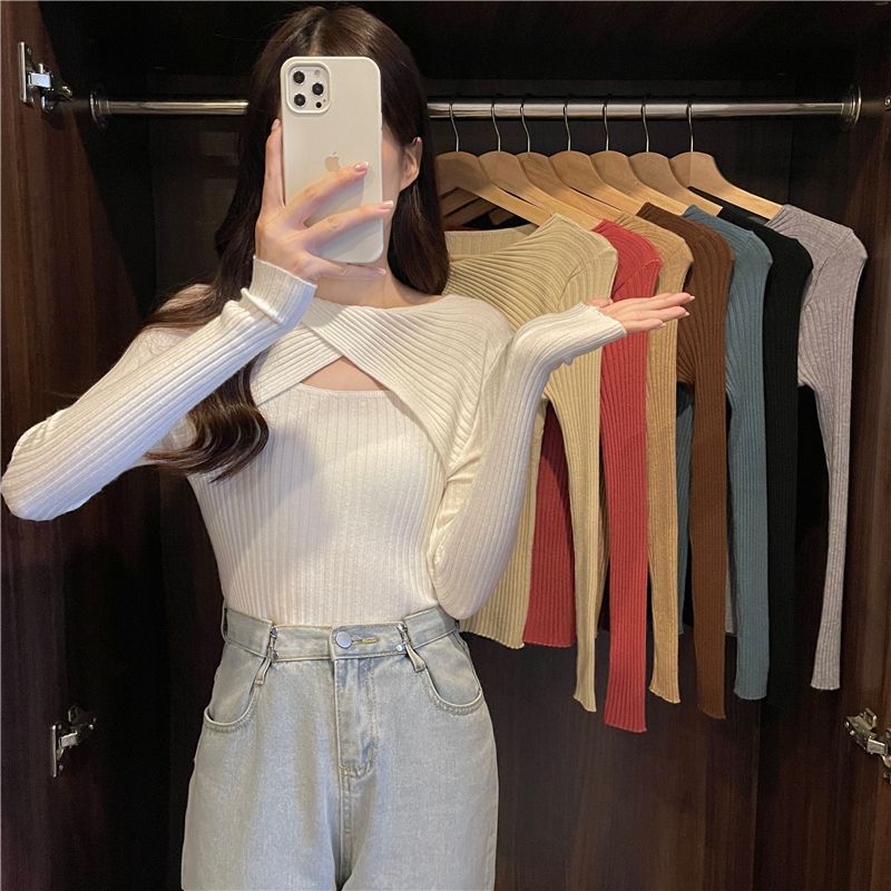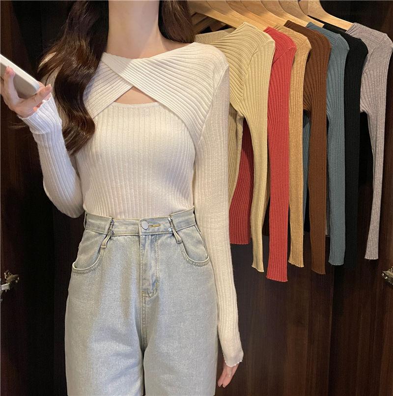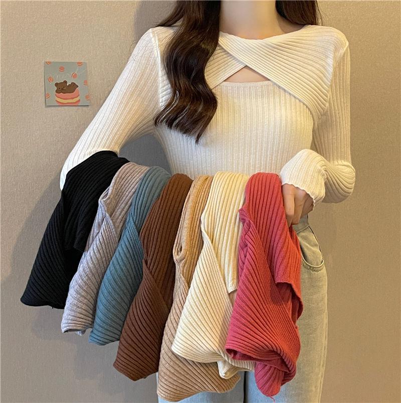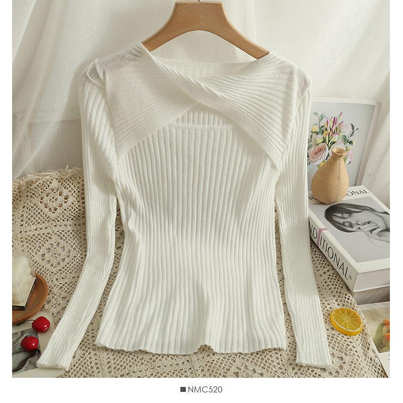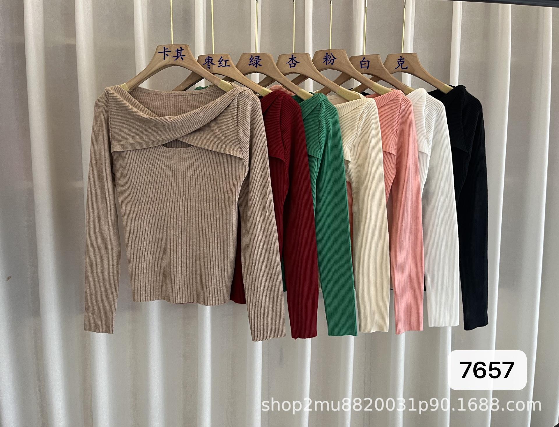 Suéter e Suéter Estilo Transfronteiriço para Mulheres no Outono Novo Design Moda Nicho Transfronteiriço Top de Base de Manga Longa