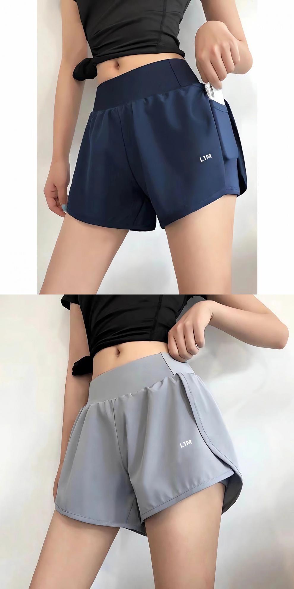 【02#Yoga shorts]-double layer gray