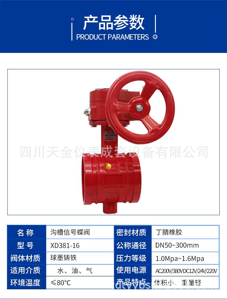 Válvula borboleta de sinal de ranhura de turbina XD381X-16 válvula borboleta de pinça de ferro fundido válvula de sinal de incêndio DN100/125