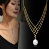 Colar Delicado de Laço Prateado com Strass Brilhantes e Pingente de Gota - Joia Exquisita para Estilo Elegante