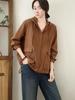 Camisa com Capuz 2025 Primavera Novo Estilo Literário Simples Cardigã de Manga Comprida Abotoamento Simples Solto Versátil Top Roupa Feminina