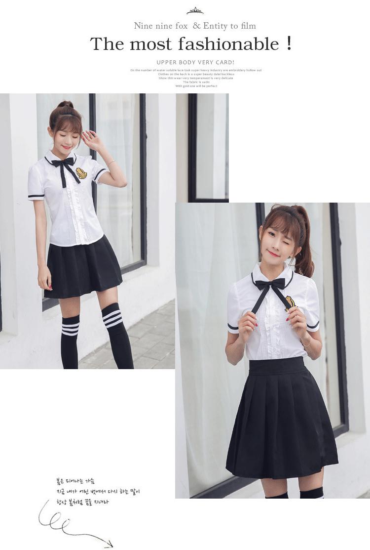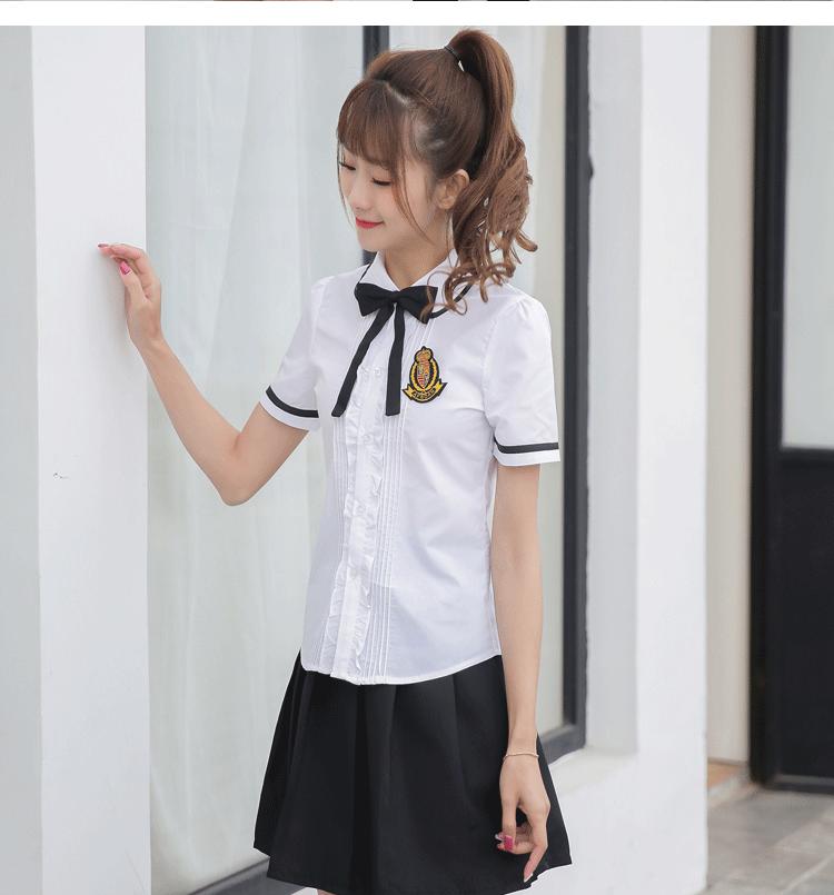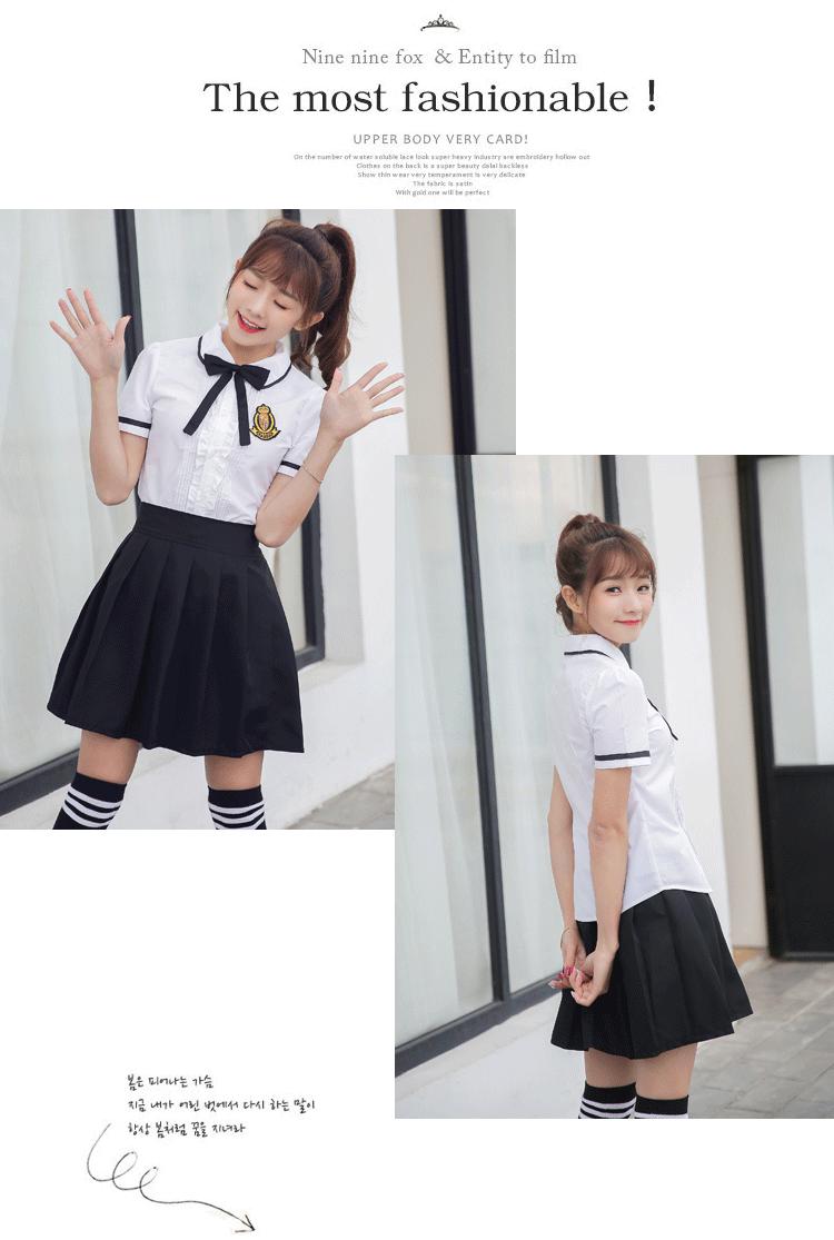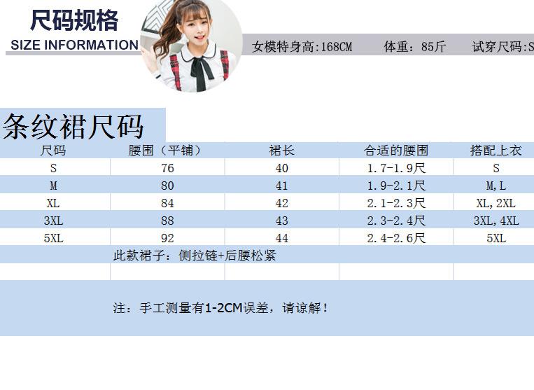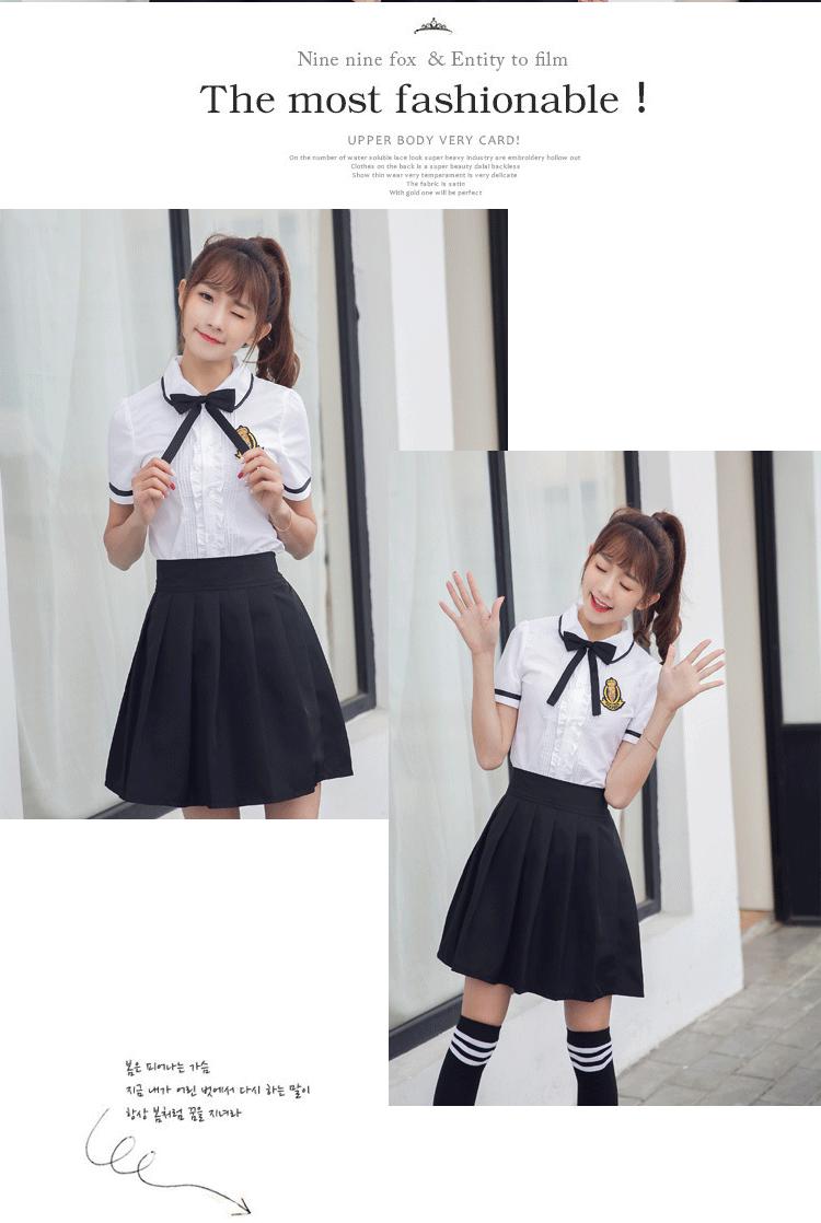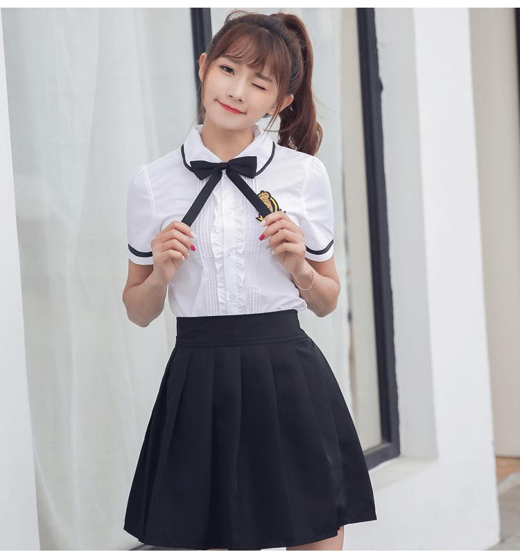 A02 shirt + bow tie + striped skirt, A02 shirt + bow tie + pure black skirt, A02 shirt + Blue Ribbon + striped...