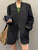 Casaco de Terno Cinza Feminino Primavera e Outono 2025 Novo Estilo Coreano Senso de Alta Qualidade Casual Solto Sem Gola Casaco de Terno para Mulheres