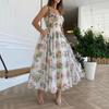 Europeu e Americano Transfronteiriço 2025 Novo Verão Roupas Femininas Doce e Fresco Listrado Alças Cintura Afinando Look Vestido Linha A Saia Curta