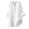 2025 Spot Ebay Amazon Aliexpress Europeu e Americano Solto Cor Sólida Gola Alta Botão Manga Longa Algodão e Linho Top para Mulheres