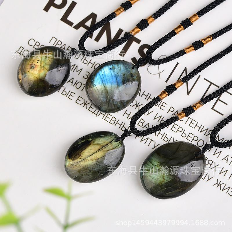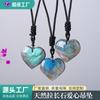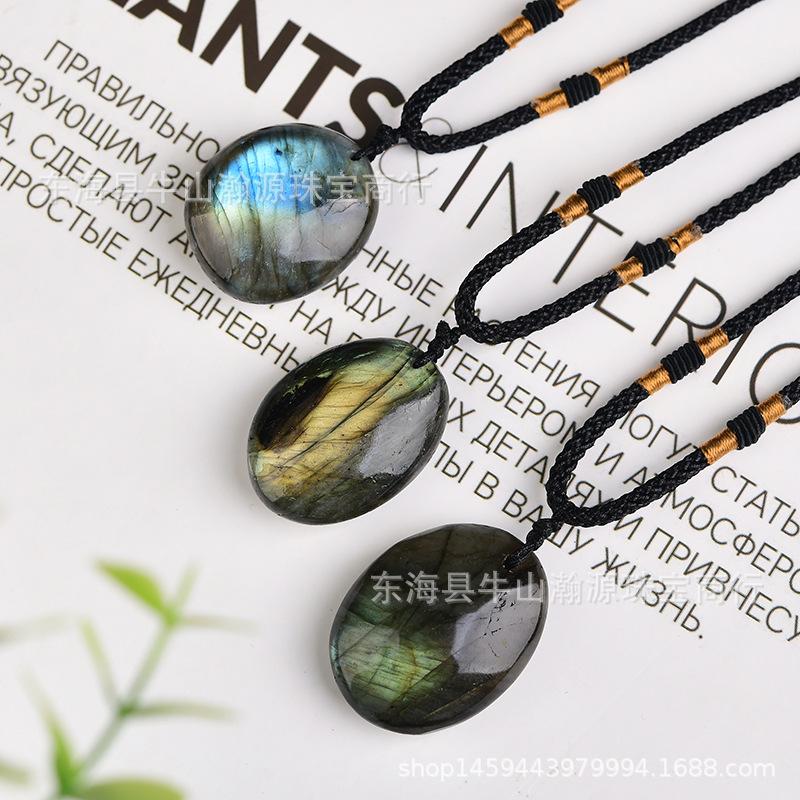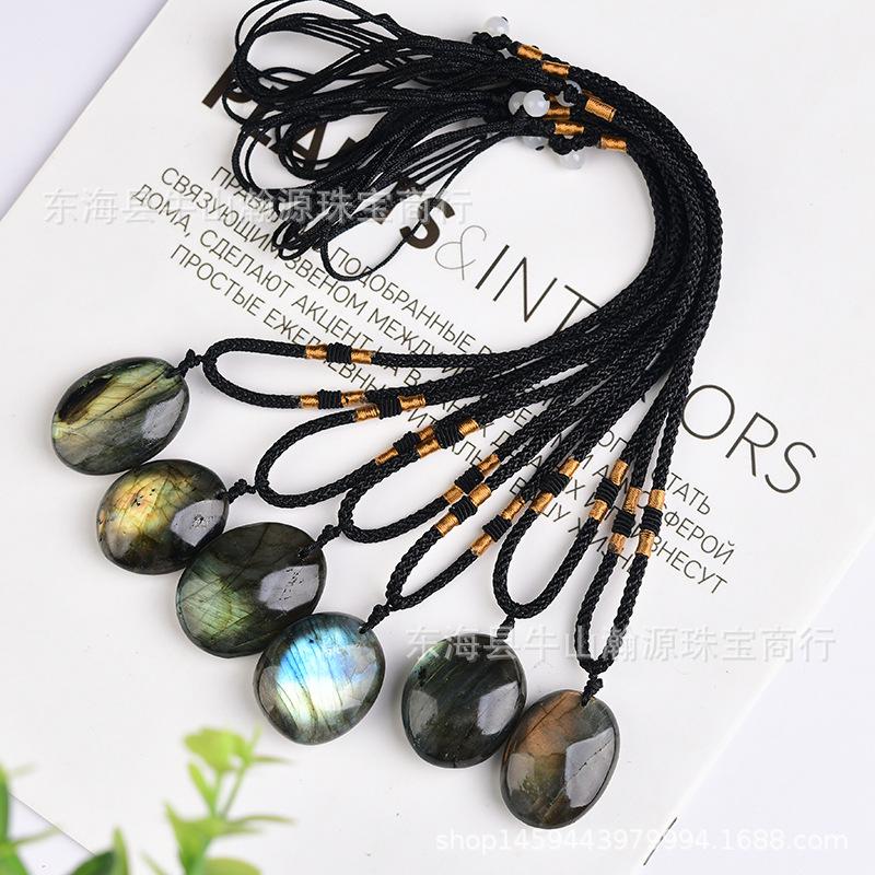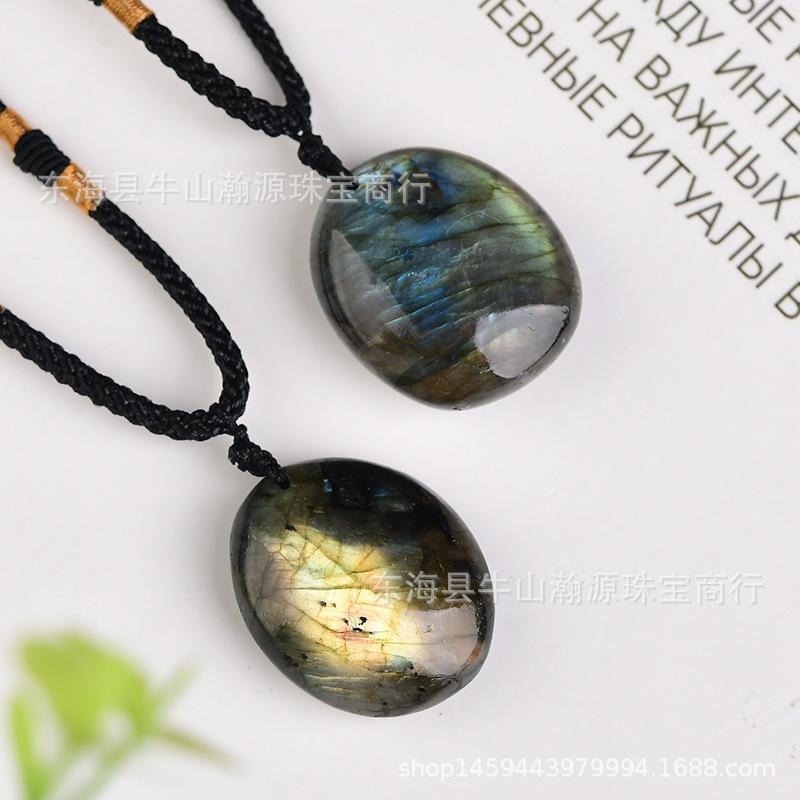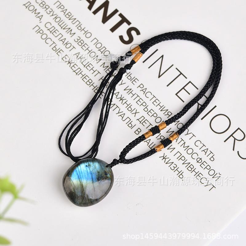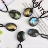 Pingente de pedra bruta labradorita de cristal natural em promoção internacional, colar faça você mesmo com pingente de corrente de suéter e pedra da lua azul