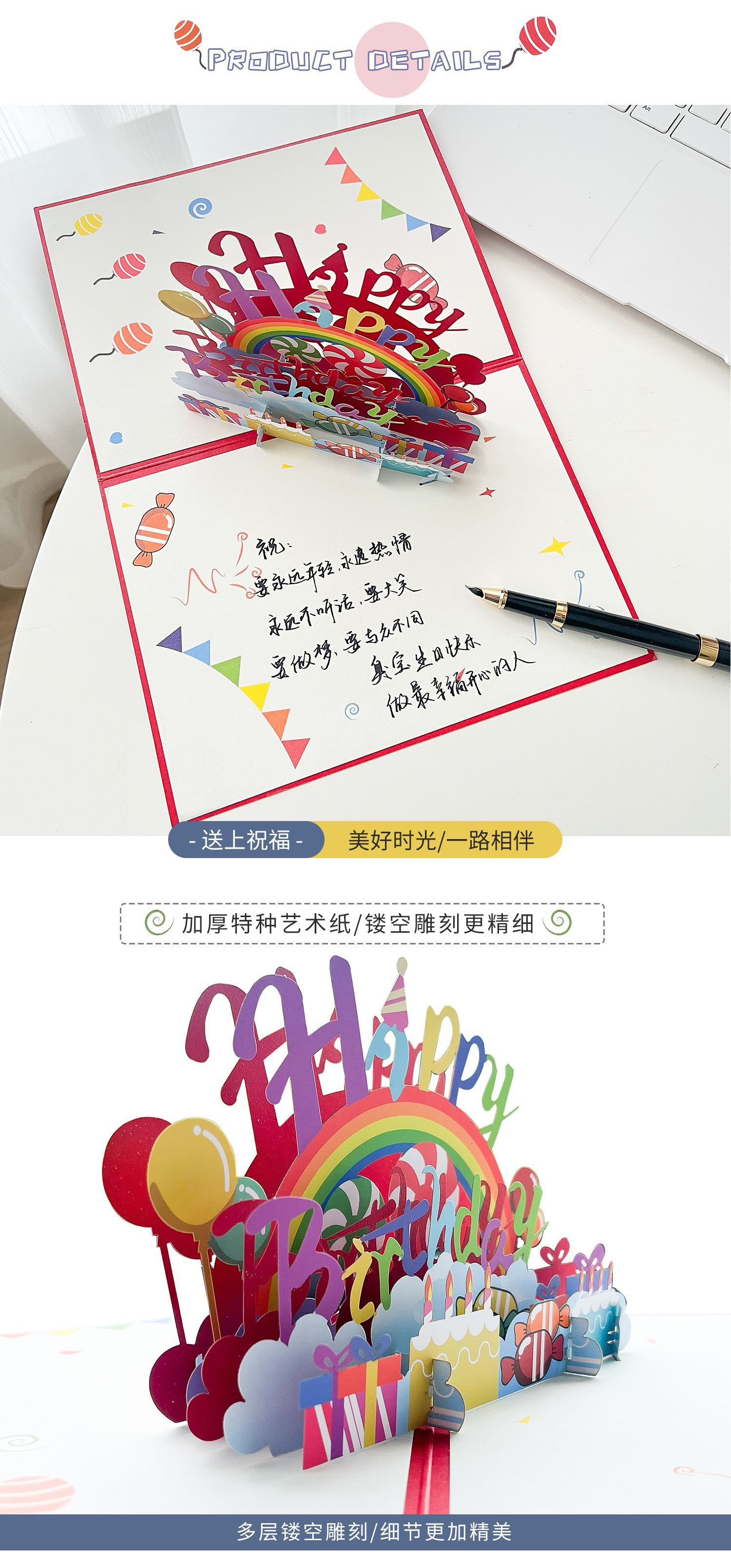 Novo Cartão de Felicitações Estéreo Criativo de Aniversário Escultura de Papel Vazado Cartão Estéreo 3D Transfronteiriço Amazon Cartão de Felicitações de Aniversário Atacado