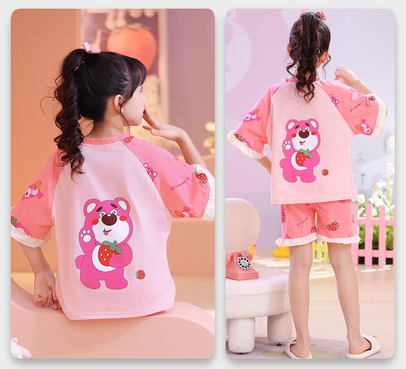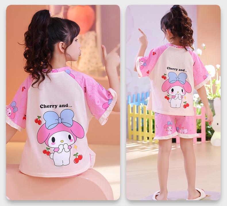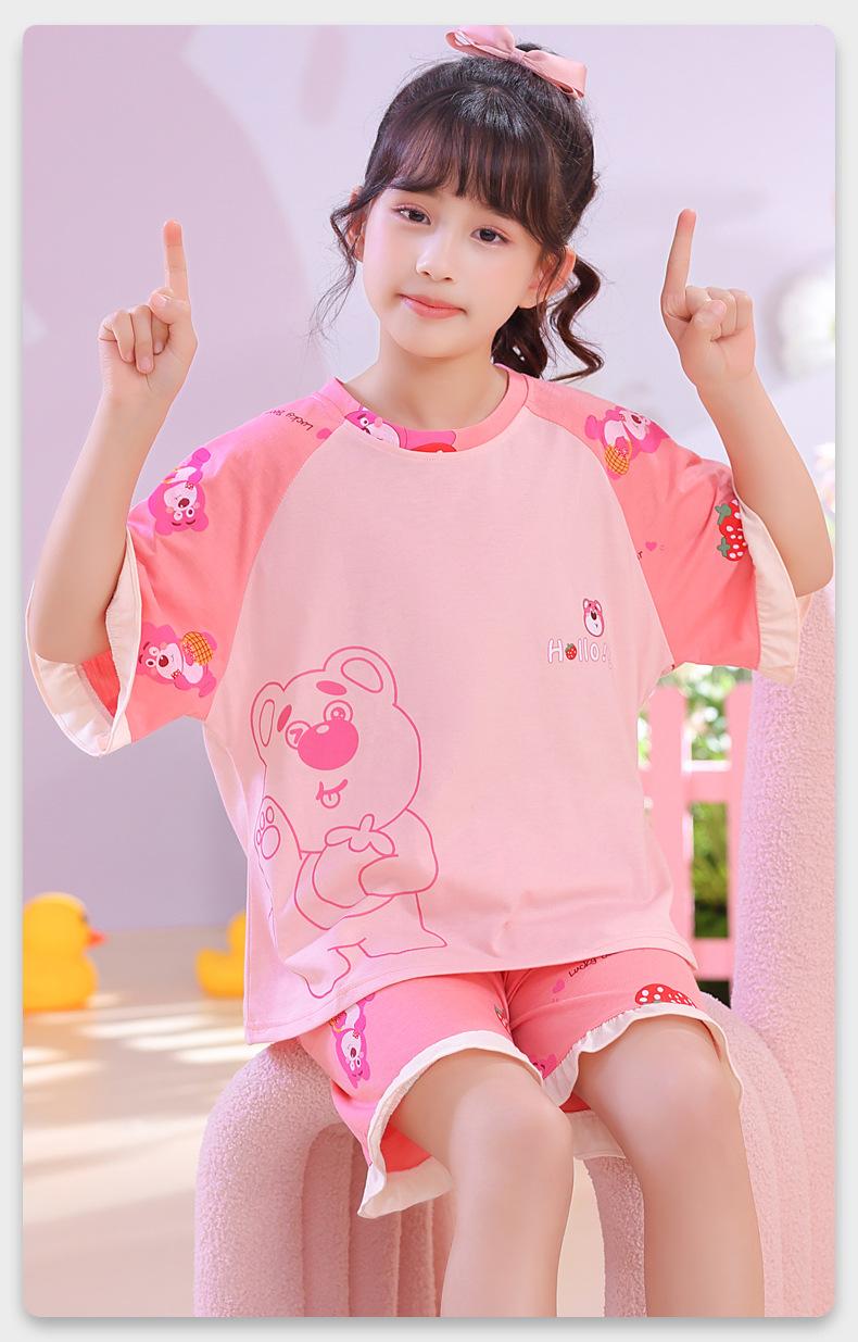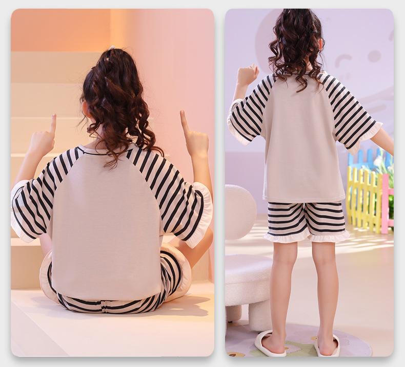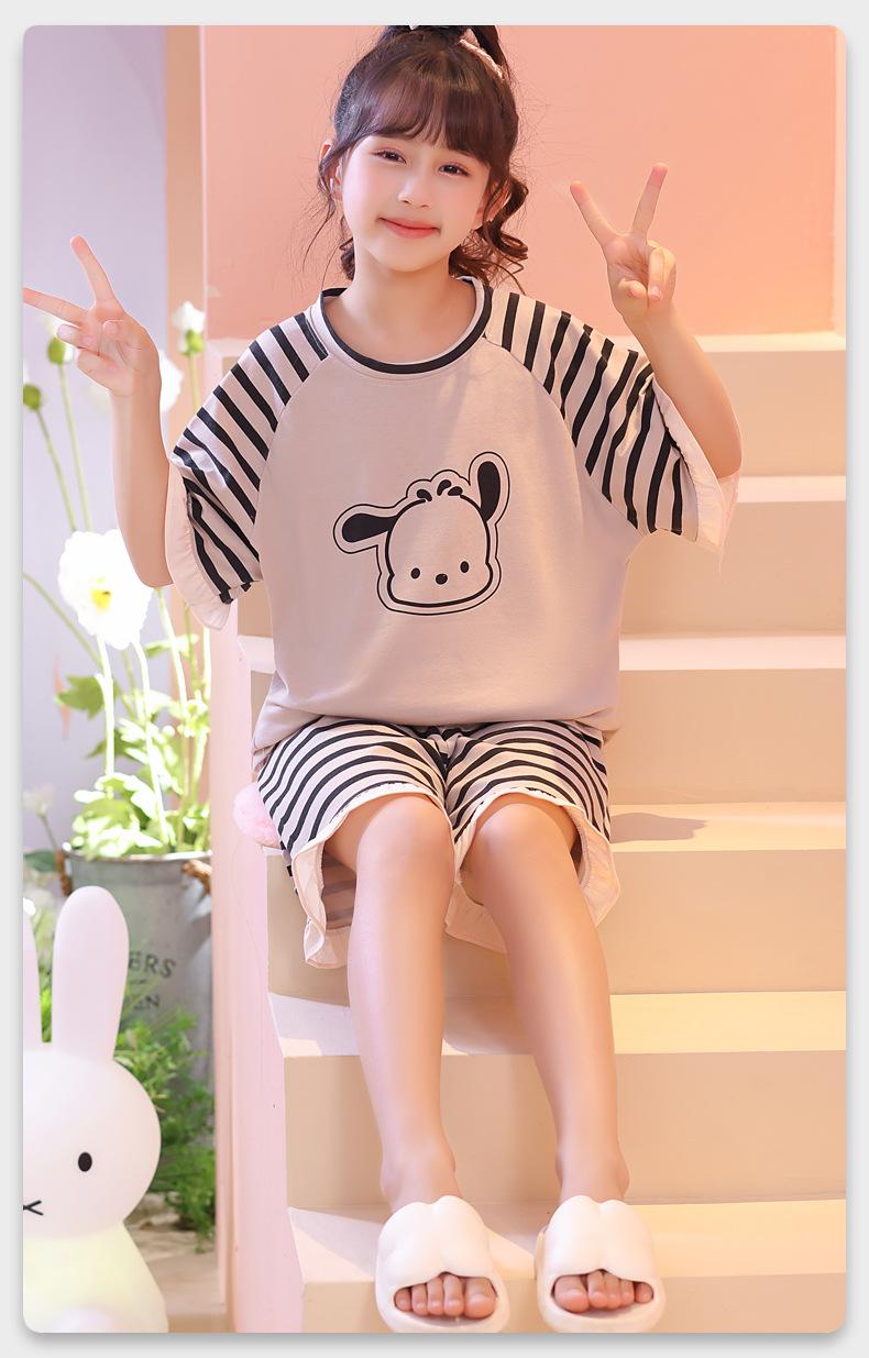 Atacado 2024 Novo pijama de menina infantil de verão fino de manga curta para meninas crianças grandes roupa de casa terno roupa de rua