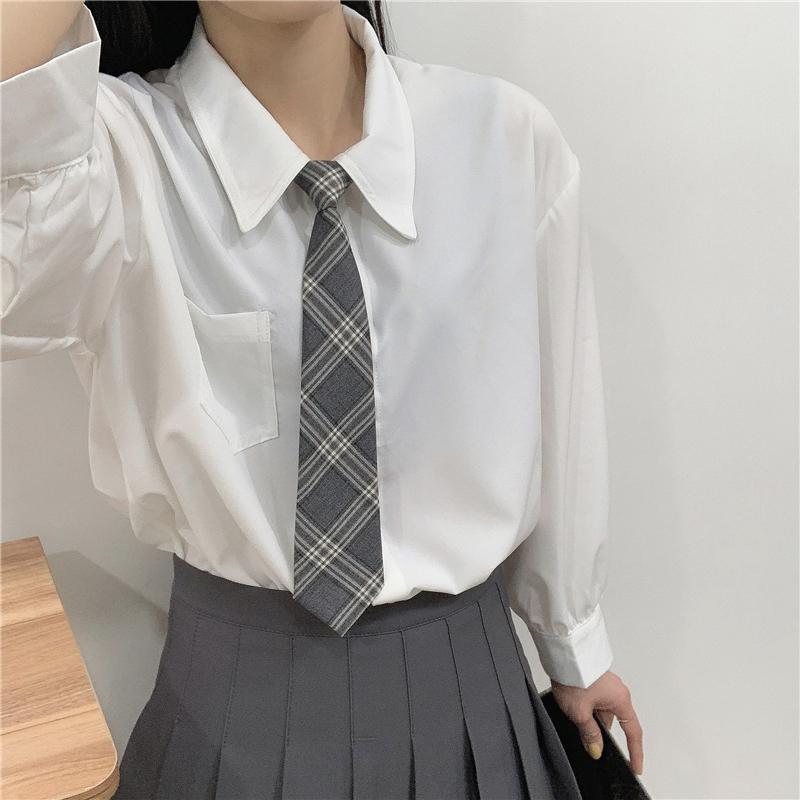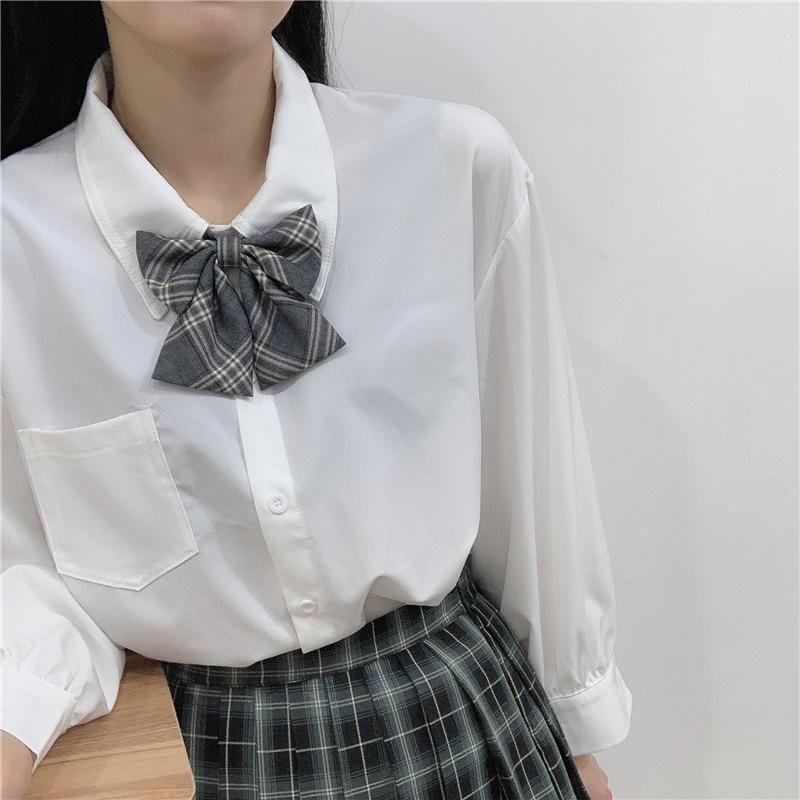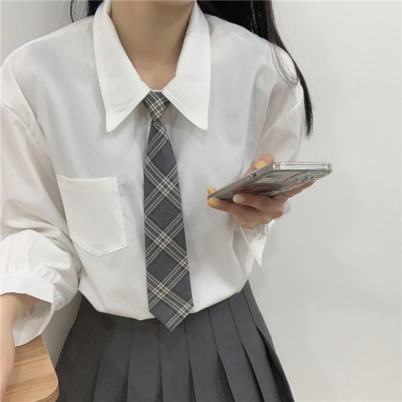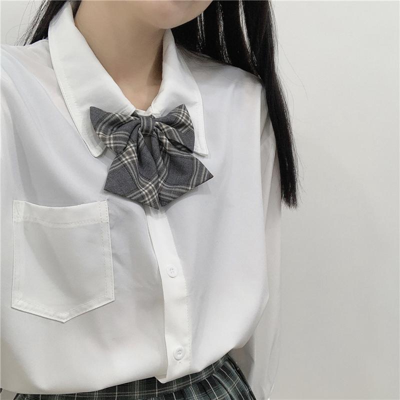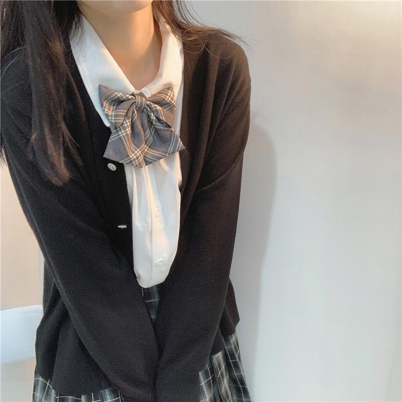 Gravata Xadrez Sem Amarrar Cinza Gravata Feminina Camisa Jk Estilo Faculdade Japonês Casal Versátil Casual Versão Coreana Gravata Borboleta Masculina Moderna