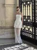 Novo Conjunto de Vestido de Verão Europeu e Americano de Duas Peças Cor Sólida Cintura Fina Sem Alças Cintura Alta Renda Transparente