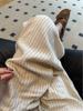 Calças largas de primavera e verão algodão linho cintura alta elástico confortáveis respiráveis calças de perna larga calças casuais listradas slim femininas