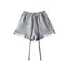 Verão 2023 novo arco-íris flor pequena bordado cintura elástica cadarço solto plus size jeans shorts finos para mulheres