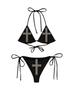 Biquíni Sexy Europeu e Americano Transfronteiriço Biquíni Sexy de Bolinhas Fato de Banho Dividido Biquíni Cor Sólida Fato de Banho Decorativo em U