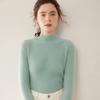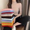 Outono e Inverno Gola de Linha Única Ombro Exposto Tricô de Manga Longa Suéter Base Slim Preto Top para Mulheres