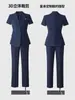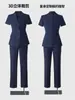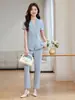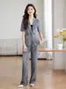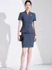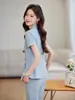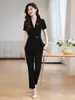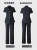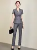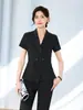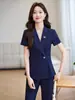 Verão Manga Curta Pequeno Terno Colarinho Jaqueta Calças Femininas Verão Profissional Azul Marinho Terno de Duas Peças 2025 Nova Moda