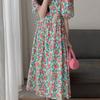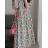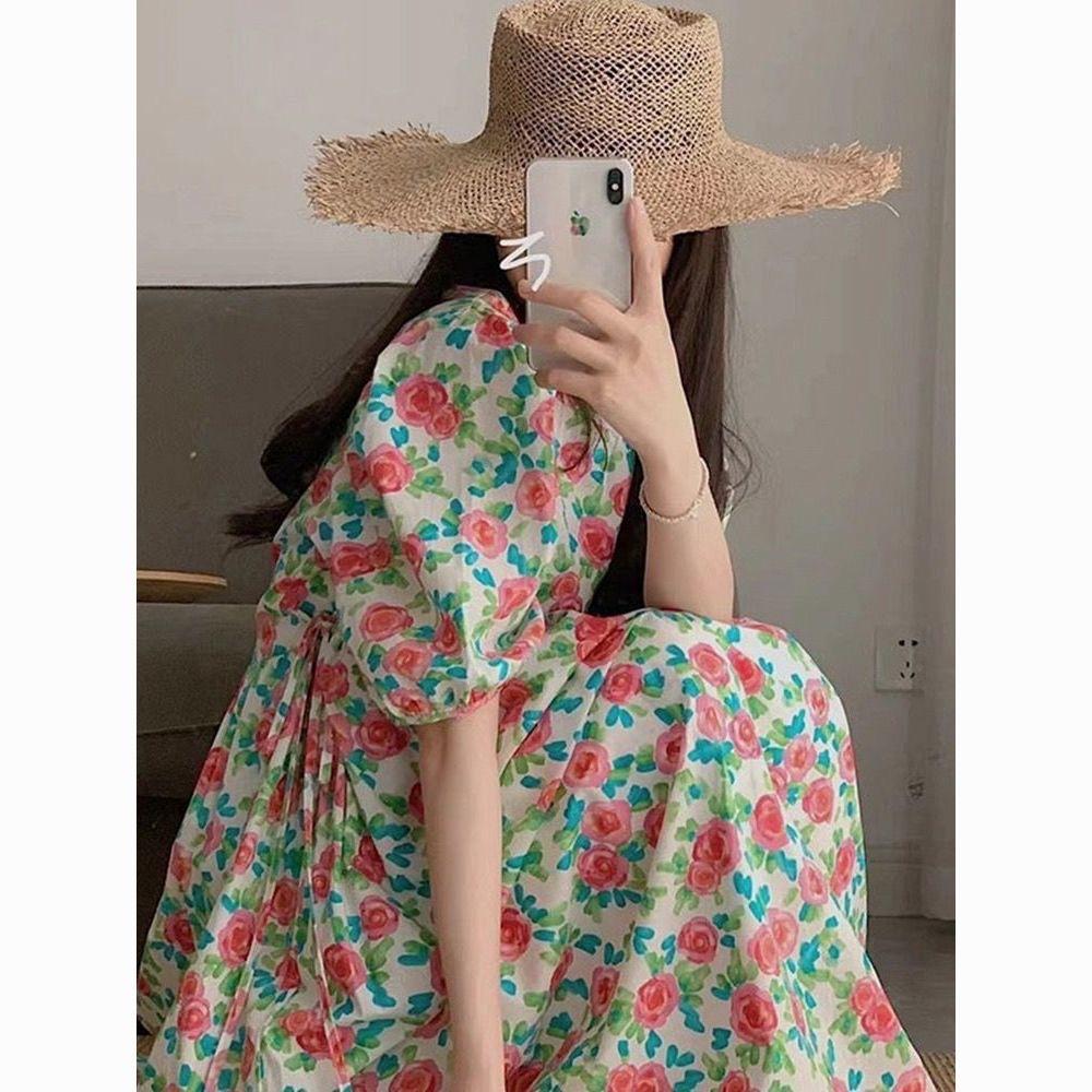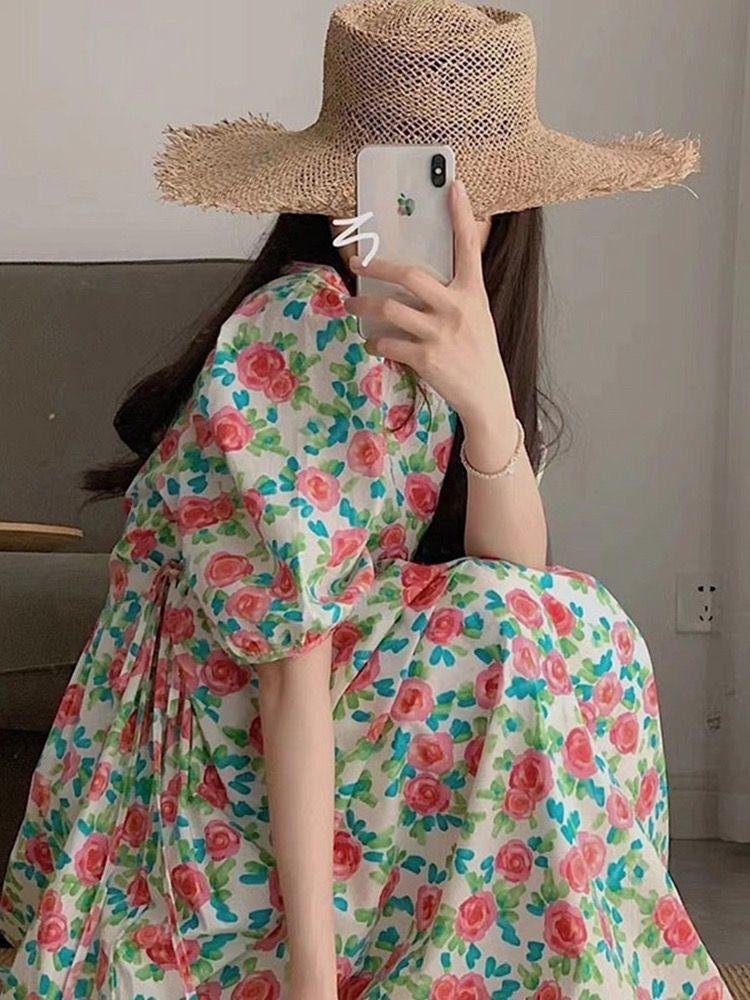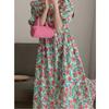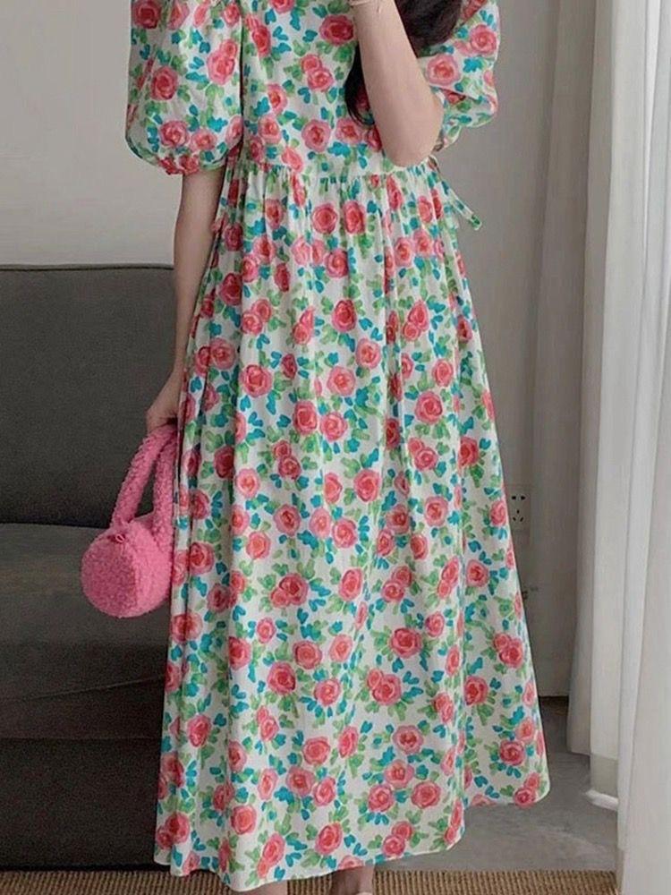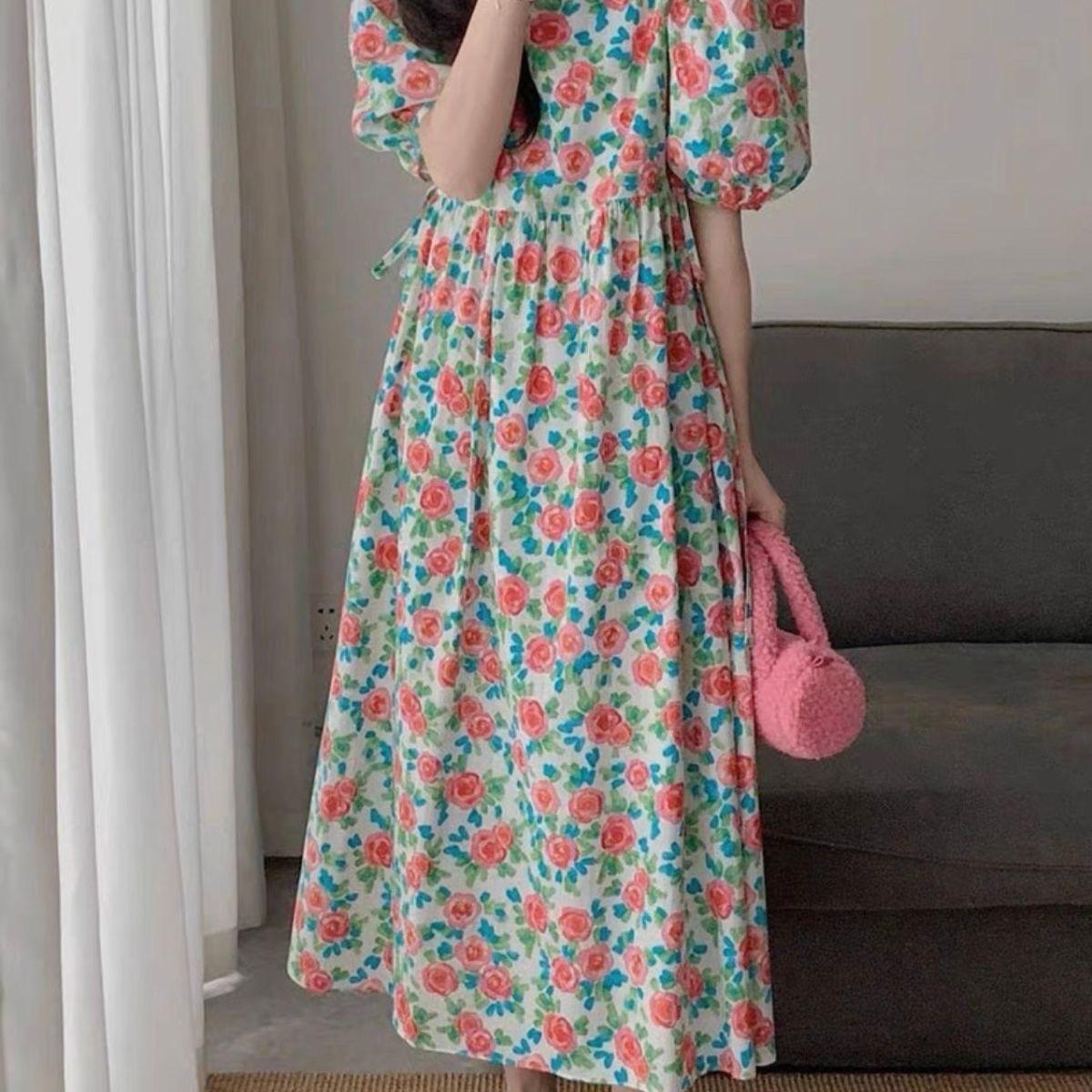 Saia Floral de Verão Coreana Retrô com Estampa de Rosa e Decote Redondo para Mulheres, Solta e Slim, Elegante Petite, Saia Versátil em A