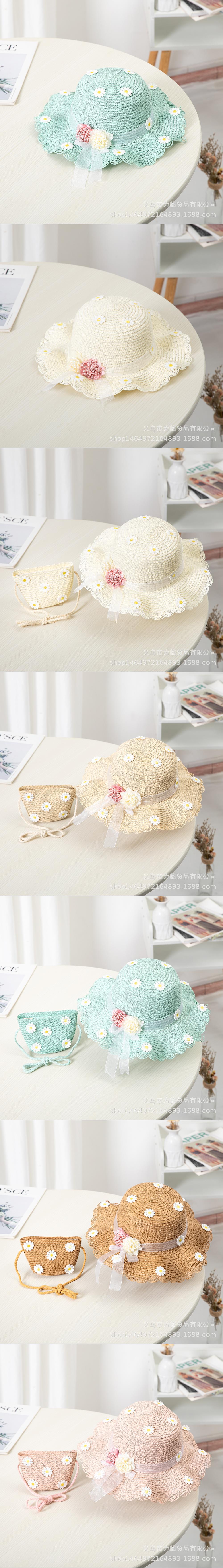 Novo Chapéu de Sol Infantil, Chapéu de Palha para Menina, Chapéu de Princesa Fofo, Chapéu de Sol de Verão para Bebê Menina, Chapéu de Praia Bolsa