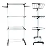 Compre Varal de Roupa de Metal Moderno de 4 Níveis Retangular Dobrável com Rodinhas Cabide Secador de Chão Livre Organizador de Lavanderia Cinza/Azul no atacado no Joom.pro