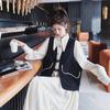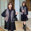 2025 Novo Vestido de Terno Petite Francês Estilo Faculdade Preto Cinto Afinando a Cintura Vestido Colete para Mulheres
