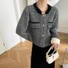Cardigã de malha com decote em V estilo Chanel transfronteiriço 2023 novo estilo suave design elegante de alta qualidade casaco de manga comprida para mulheres