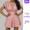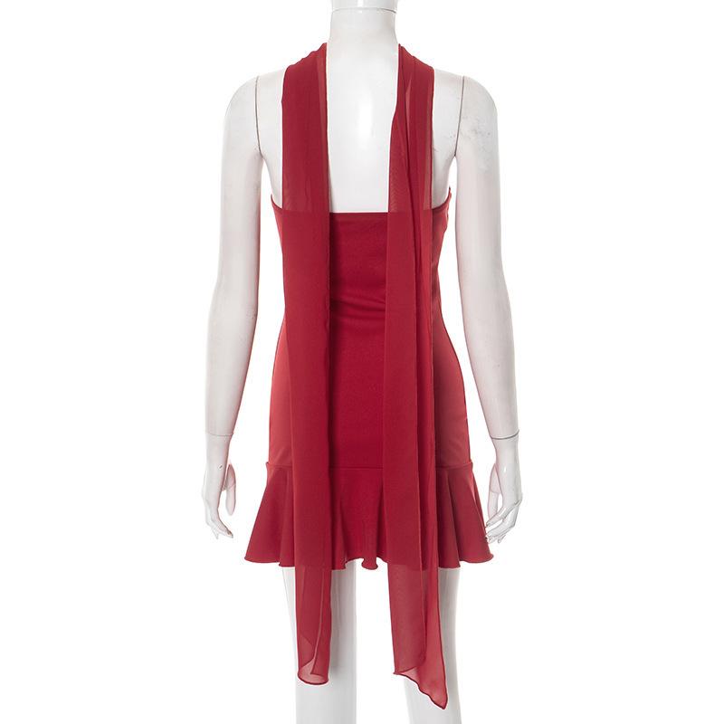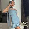 Europeu e Americano Transfronteiriço Elegante Tomara que Caia Emagrecimento Verão Amazon Novo Cor Sólida Fita Babado Vestido Sexy