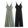 Macacão Feminino Moda Europeia e Americana Verão 2025 Cor Sólida Textura Cetim de Seda Pendente Sem Costas Sem Mangas Pernas Largas