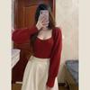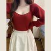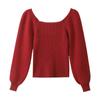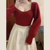 2025 Primavera e Outono Pequeno Novo Estilo Preguiçoso Base Interna Top de Tricô Gola Quadrada Suéter Vermelho de Ano Novo para Mulheres