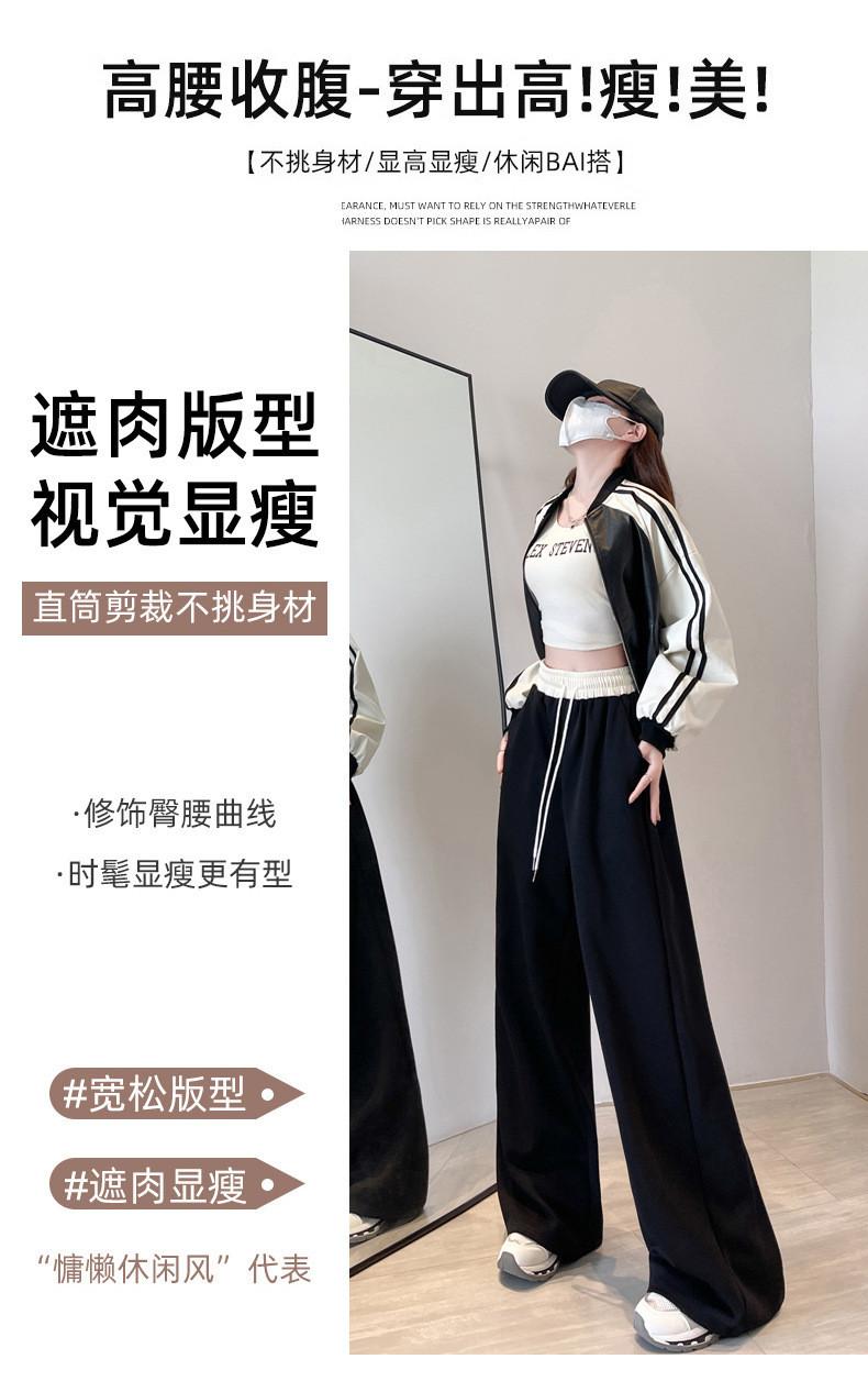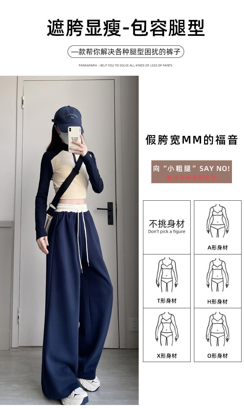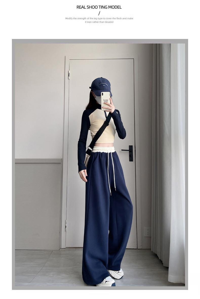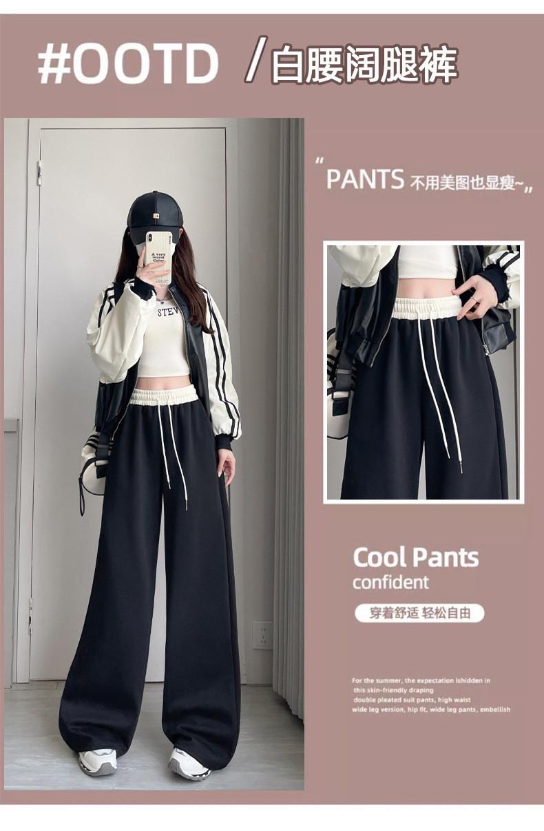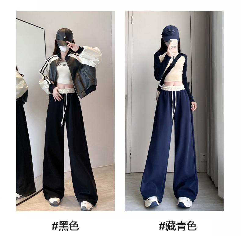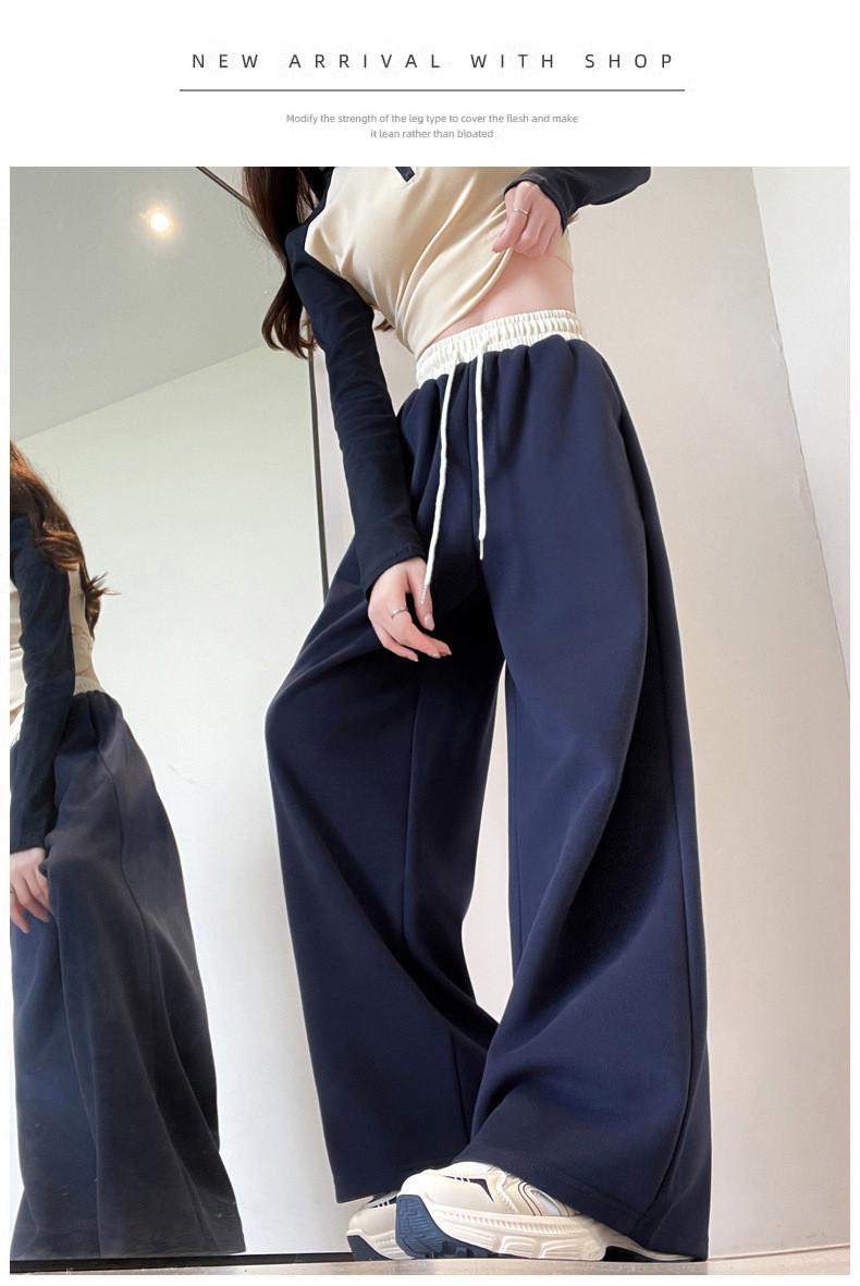 Calças Largas Preguiçosas Femininas Primavera e Outono 2025 Novas Cintura Alta Soltas Calças Esportivas Sensação de Drenagem Cor de Contraste Calças Casuais Preguiçosas