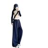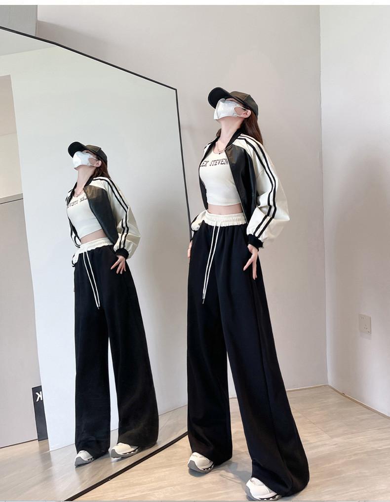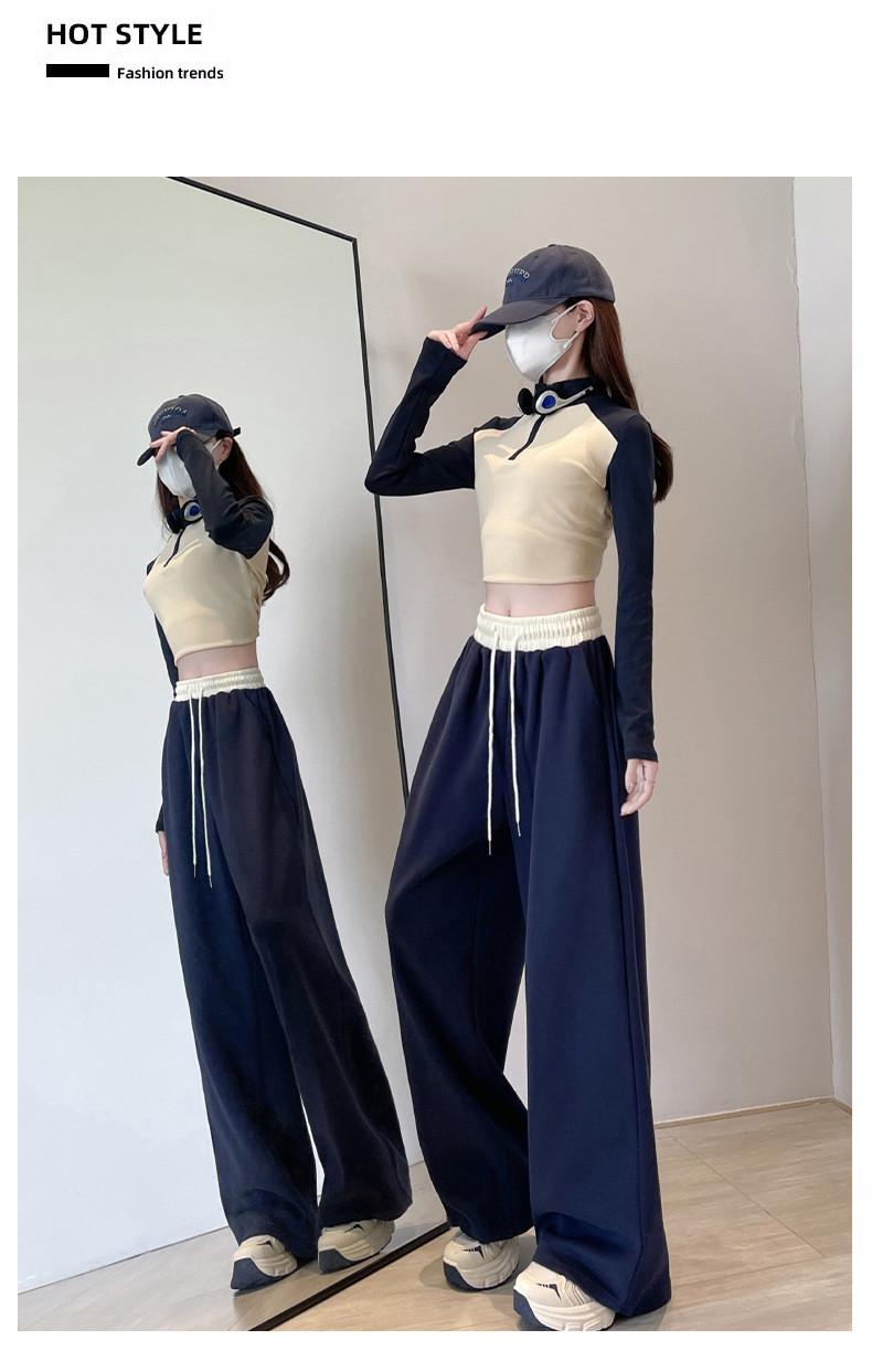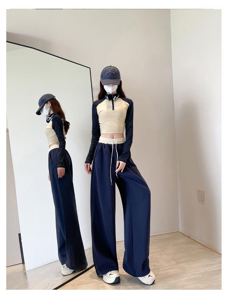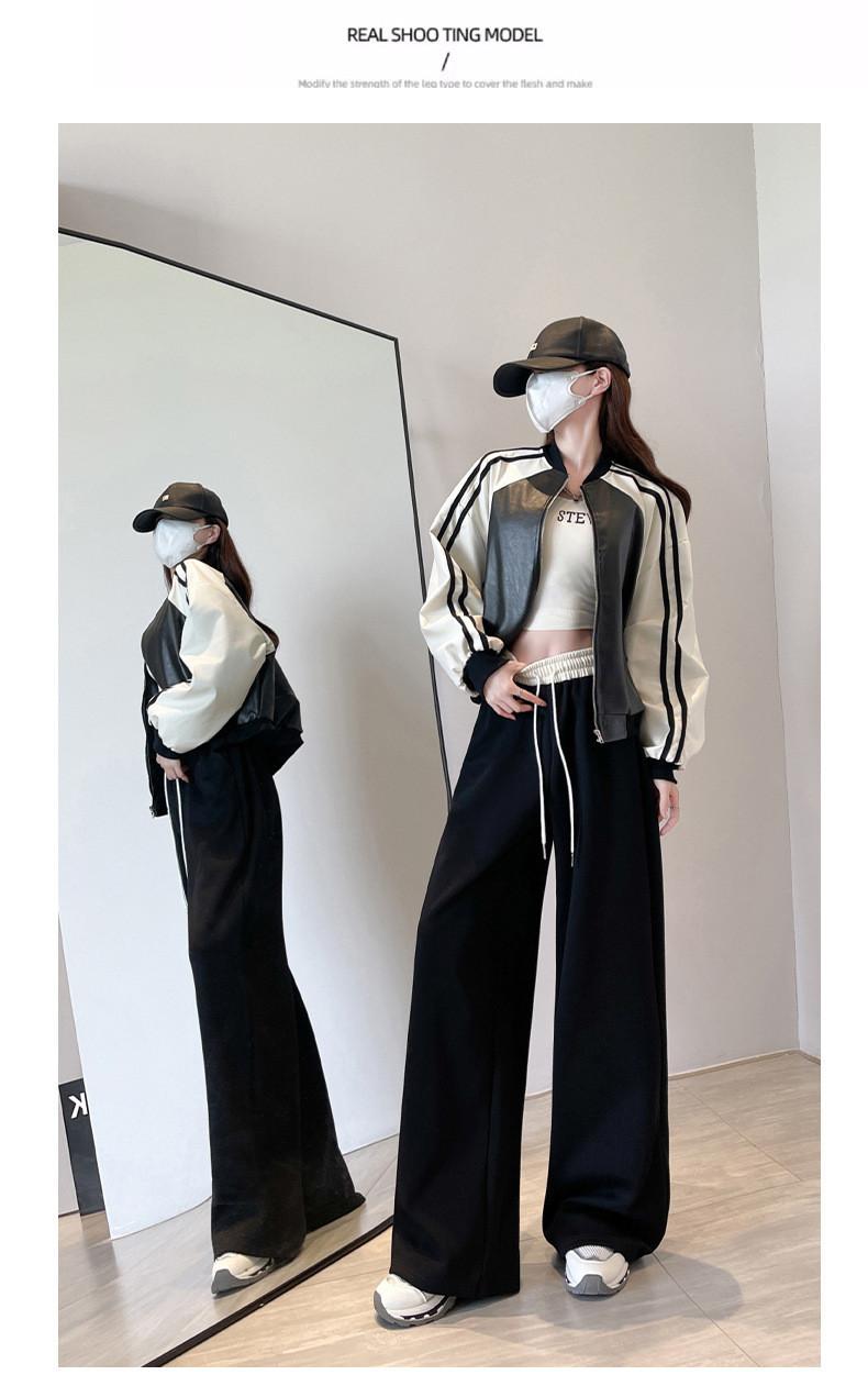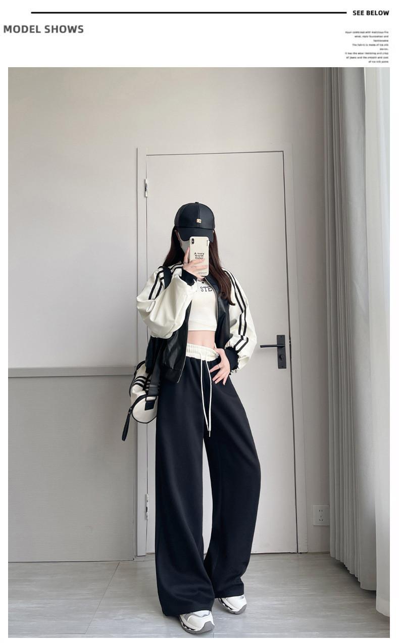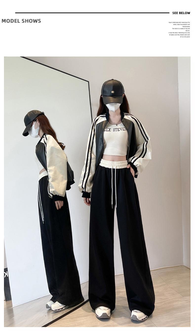 Calças Largas Preguiçosas Femininas Primavera e Outono 2025 Novas Cintura Alta Soltas Calças Esportivas Sensação de Drenagem Cor de Contraste Calças Casuais Preguiçosas