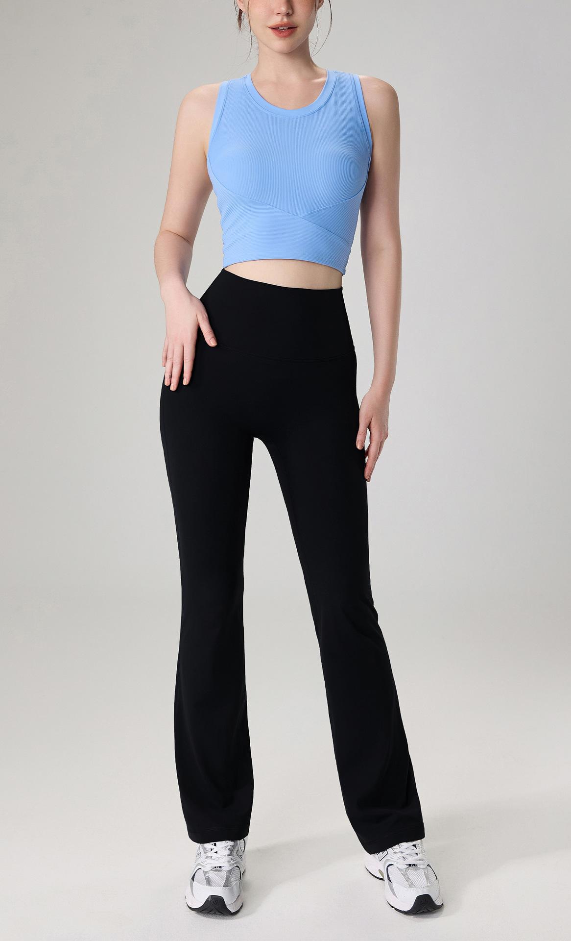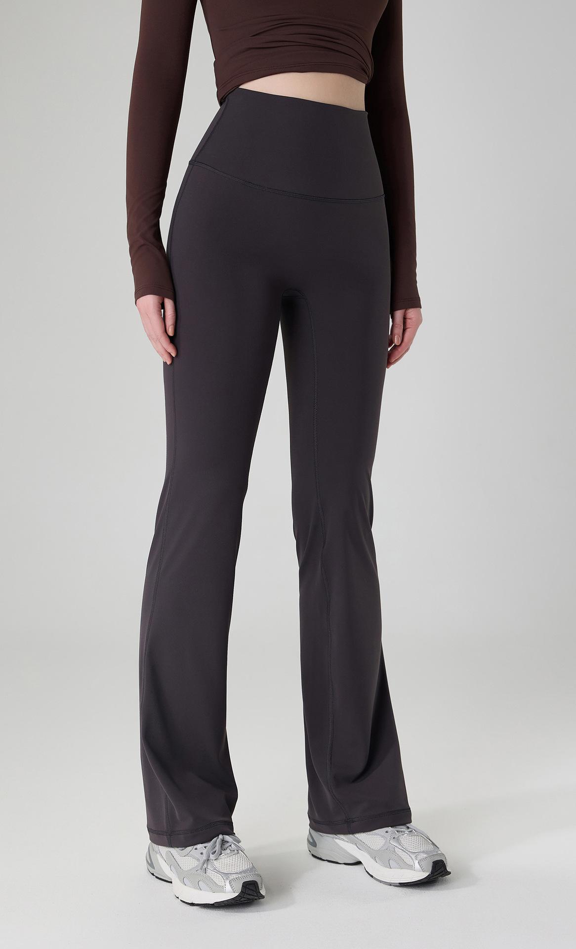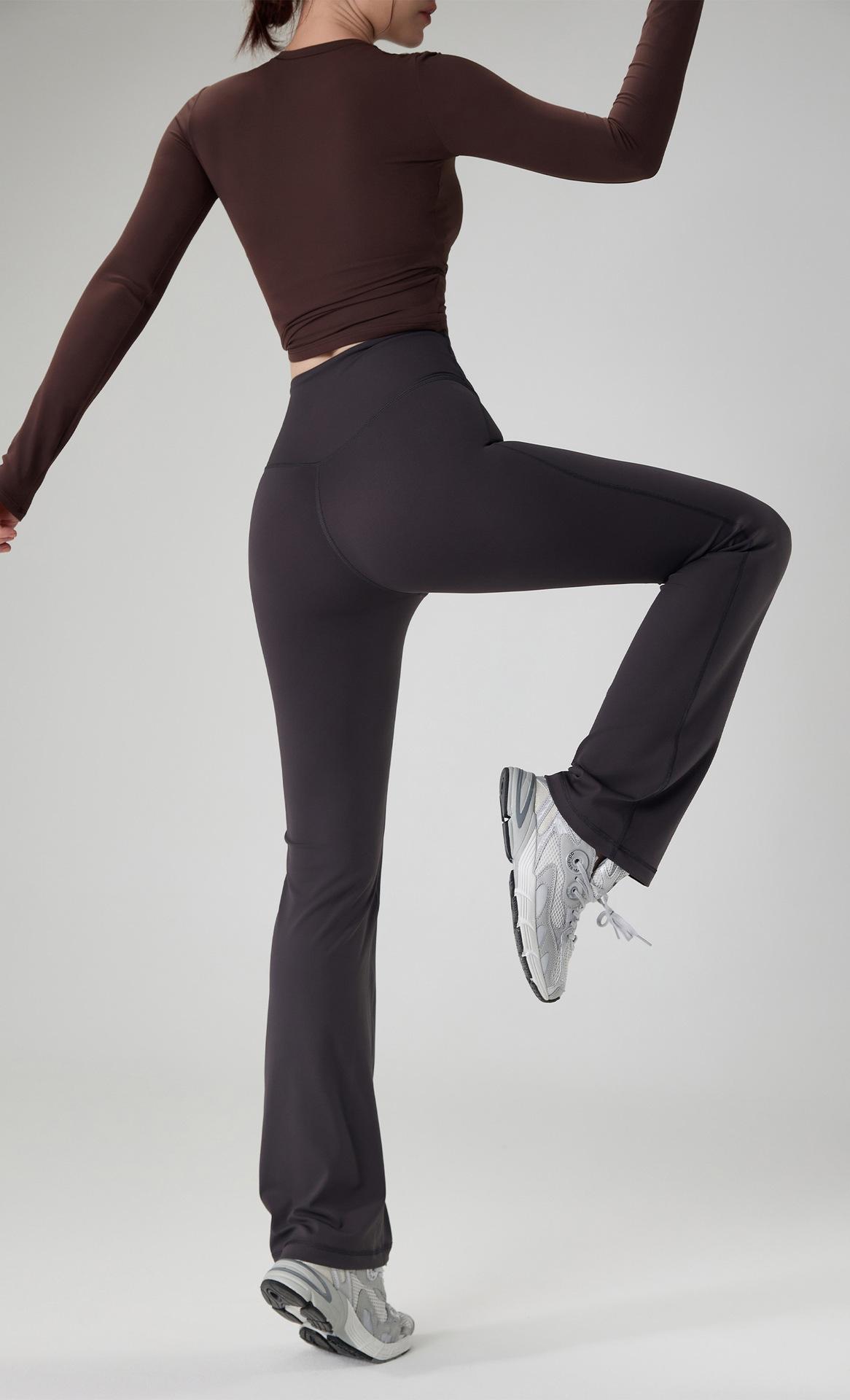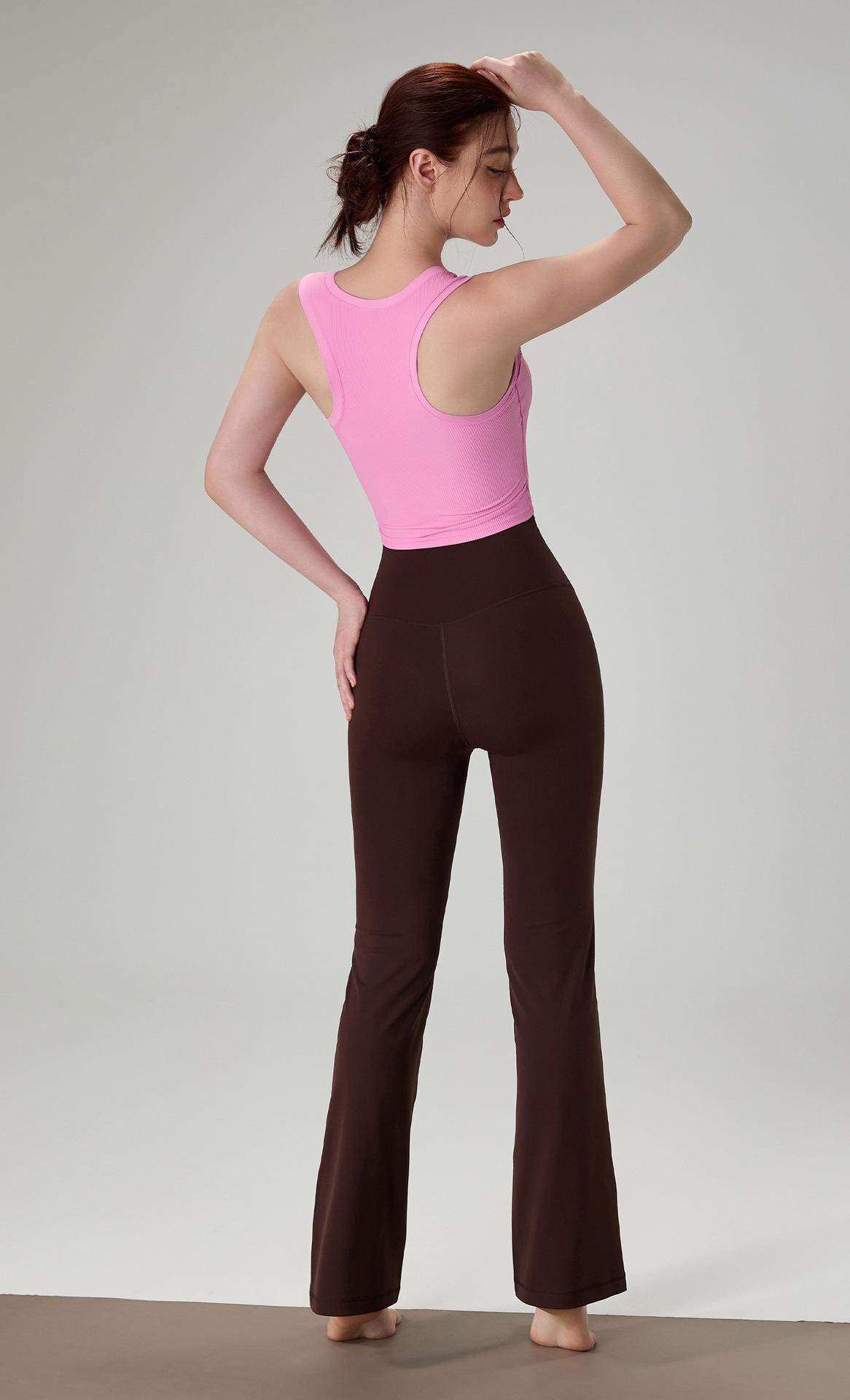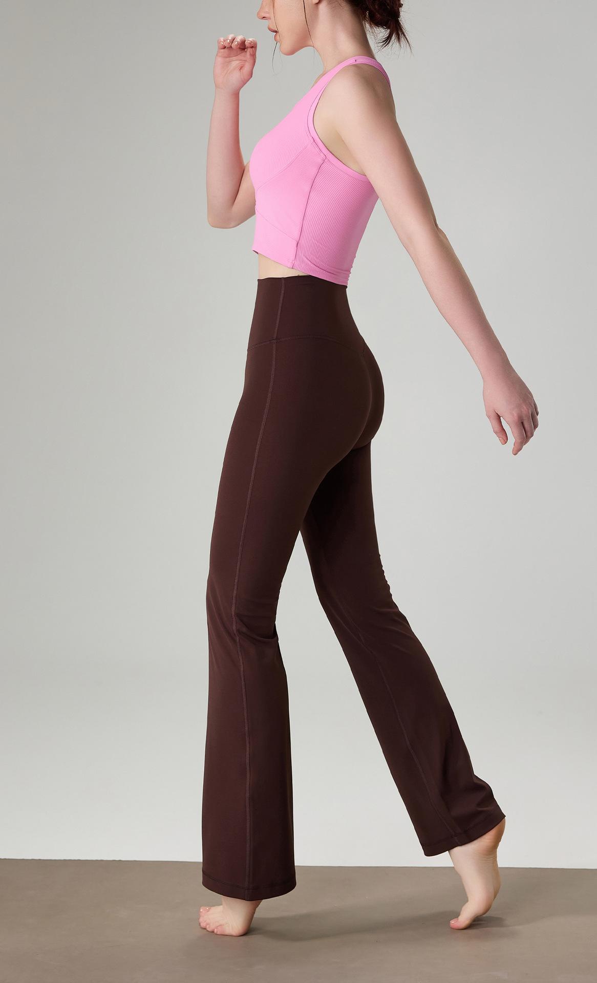 Calças Esportivas de Fitness Huanpan Clothing Cintura Alta Levanta Bumbum Micro-Boca de Sino Calças de Yoga Nude Esportes ao Ar Livre Calças Boca de Sino para Mulheres