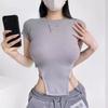 Puro Sexy Quente Meninas Justo Colarinho Semiaberto Camiseta de Manga Curta Verão Fino Macio Revelador de Peito Grande Top Camiseta Base