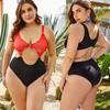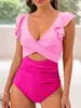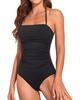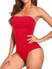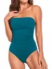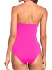 Maiô europeu e americano 2024 plus size de cor sólida com alça de ombro removível, maiô feminino sexy tomara que caia plissado de uma peça