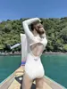 Maiô de Surf de Gola Alta com Zíper para Mulher Manga Longa Protetor Solar Sem Costas Roupa de Mergulho Profissional Versão Coreana Novo Maiô 2025