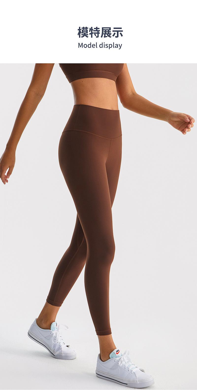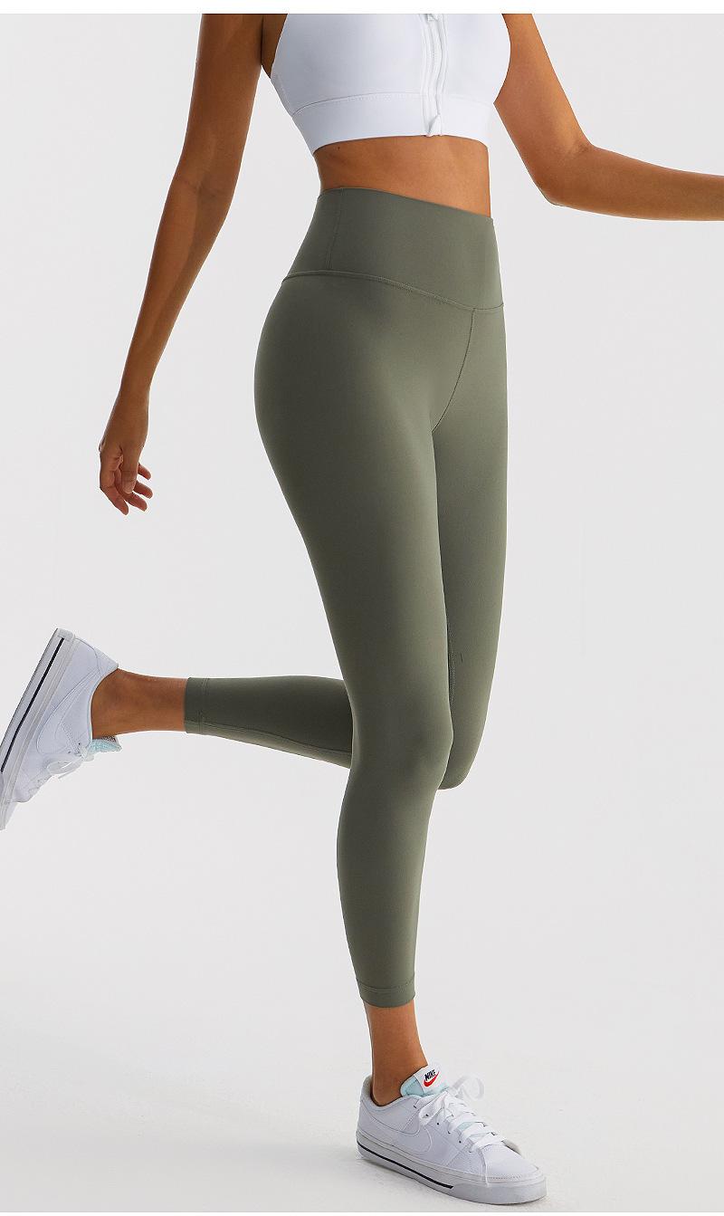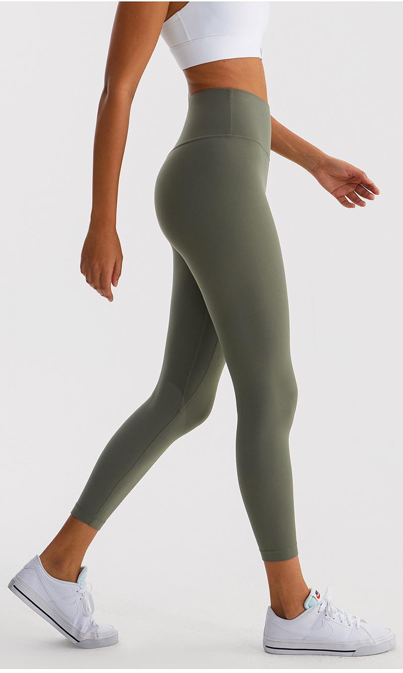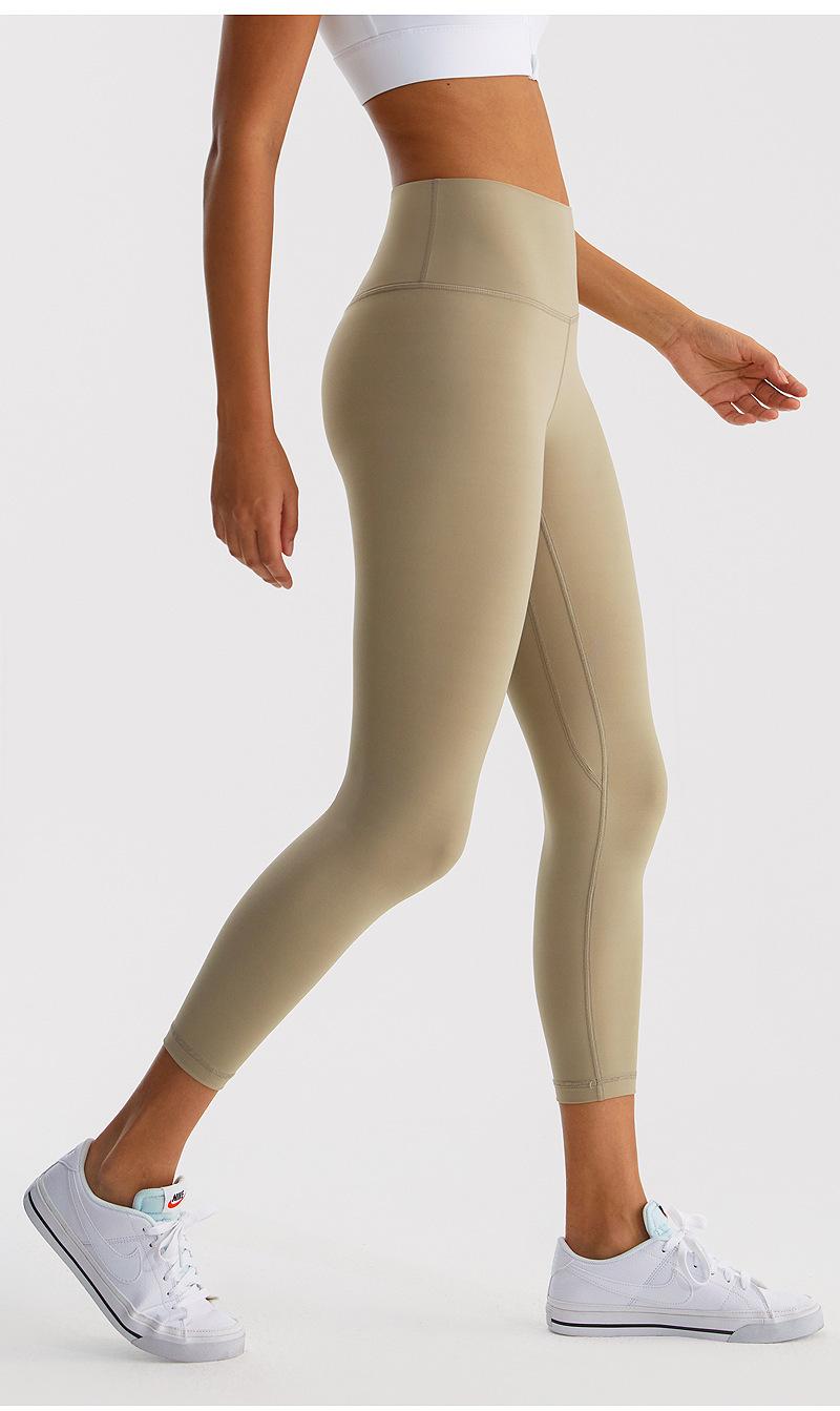 Calças de Yoga de Nove Pontos de Alta Elasticidade com Toque Escovado e Sensação Nua Cintura Alta com Controle da Barriga Modeladoras Levanta Bumbum Calças Esportivas para Fitness Corrida Jsk39H